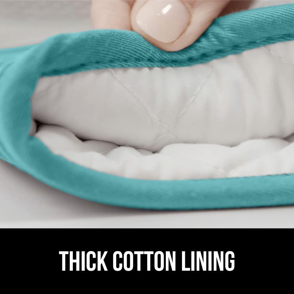 GORILLA GRIP BPA-Free Soft Silicone Oven Mitts, Heat Resistant and Waterproof Cooking Gloves, Thick Cotton Lining, Flexible Gripping for Baking Grilling, Kitchen Potholders Set, 12.5x8.3, Turquoise