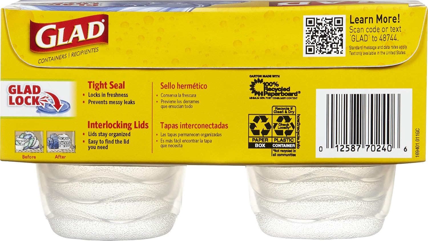 - 12 PACK VALUE SIZE AIRTIGHT FOOD STORAGE CONTAINERS β GladWare is your kitchen ally with this 12 pack value size set of airtight food storage containers. This order comes with 192 pieces total- 96 lids and 96 containers to extend the lifetime of your leftovers and reduce mess