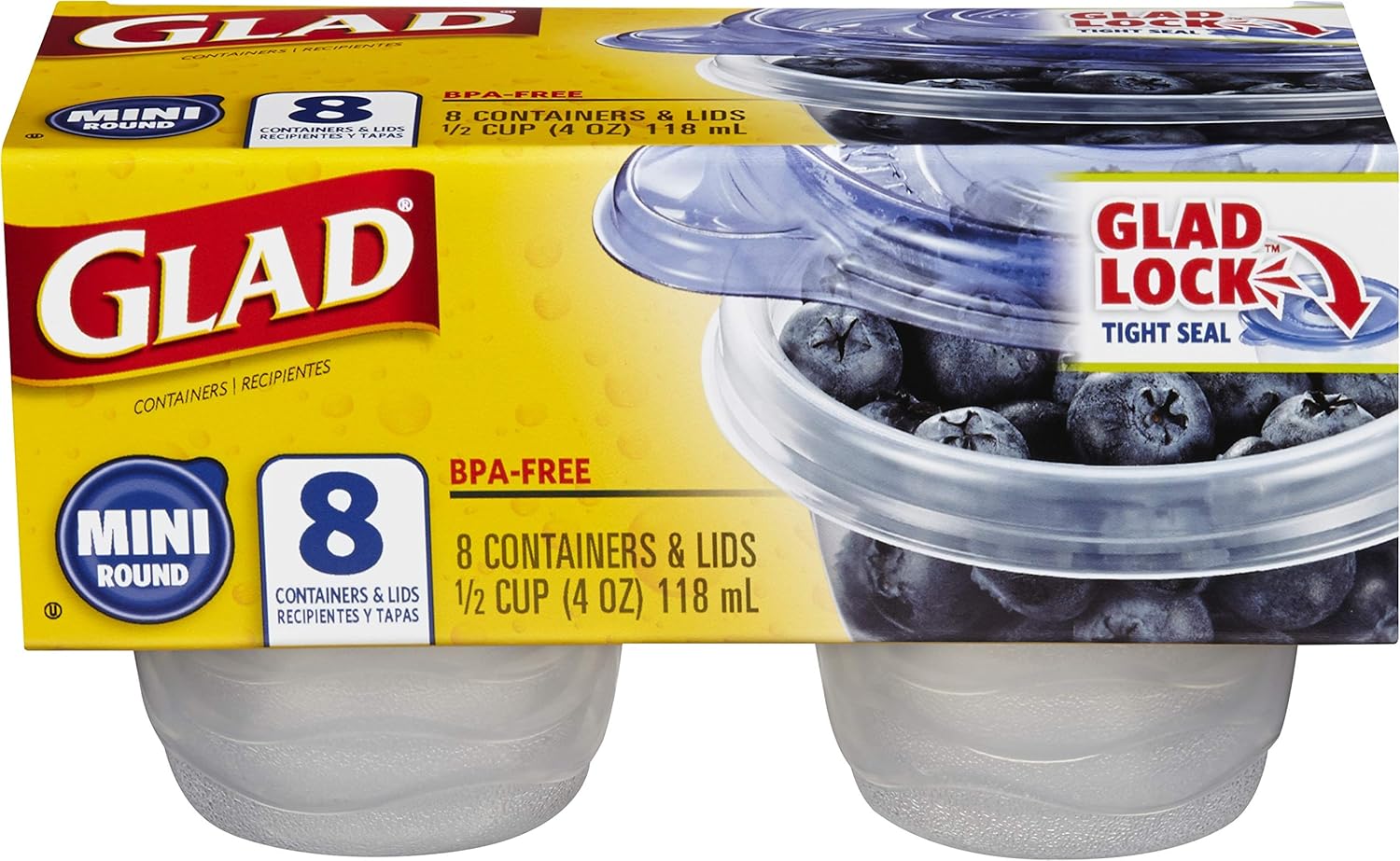 Glad GladWare Mini Round Food Storage Containers - Small Meal Container Holds up to 4 Ounces of Food - Lock Tight Seal, 8 Count - 12 Pack