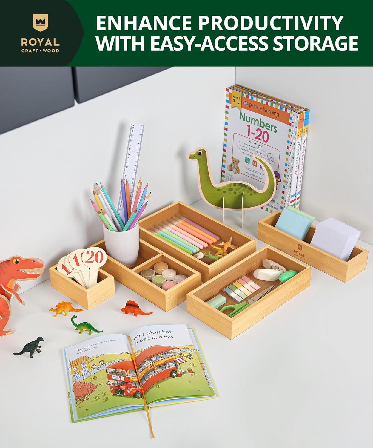 ROYAL CRAFT WOOD 5-Piece Bamboo Drawer Organizer Set โ Multi-Use Storage Trays for Kitchen, Bathroom, Office, Makeup, Jewelry & More โ Junk Drawer Tray, Utensil Holder, Storage Box & Bin Set (5 Boxes)