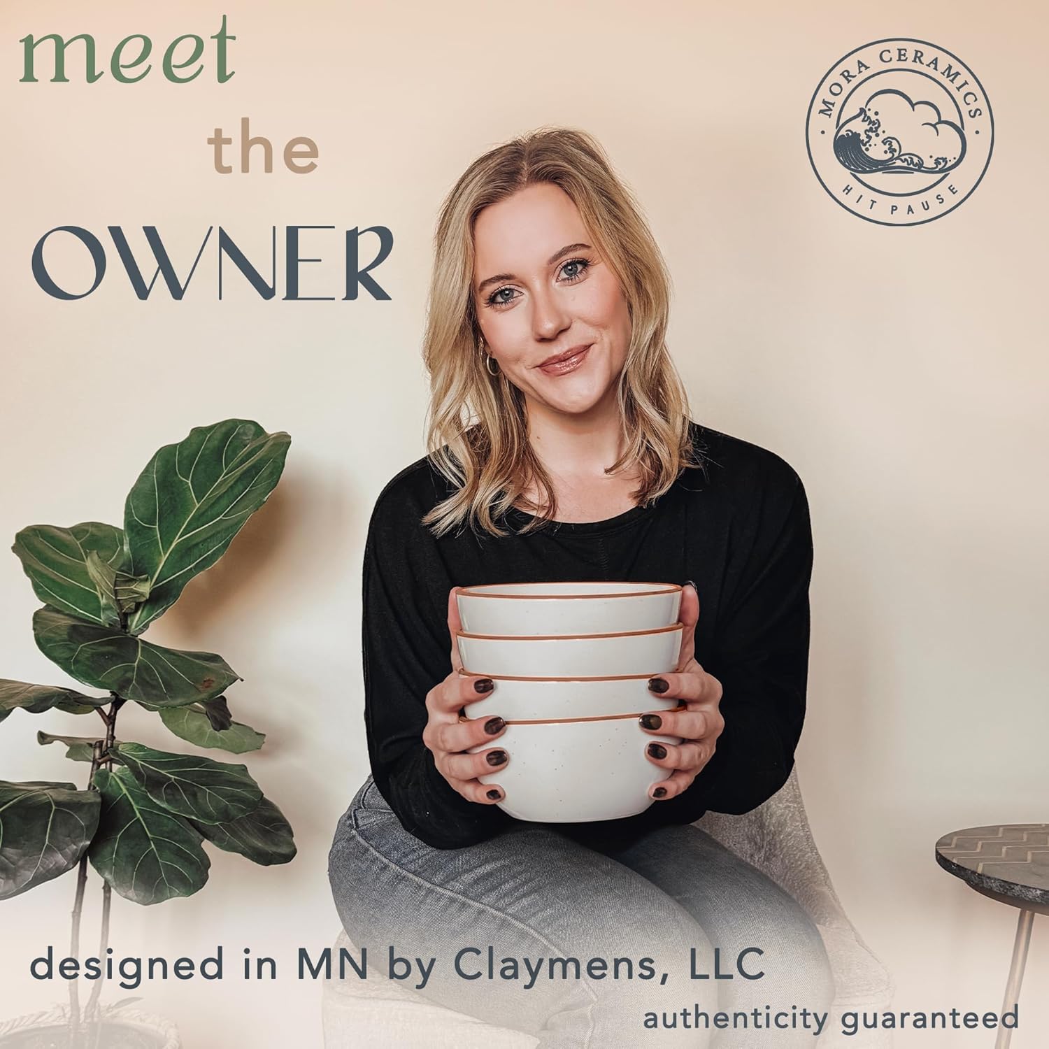 Mora Ceramic Bowls For Kitchen, 28oz - Bowl Set of 4 - For Cereal, Salad, Pasta, Soup, Dessert, Serving etc - Dishwasher, Microwave, and Oven Safe - For Breakfast, Lunch and Dinner - Vanilla White