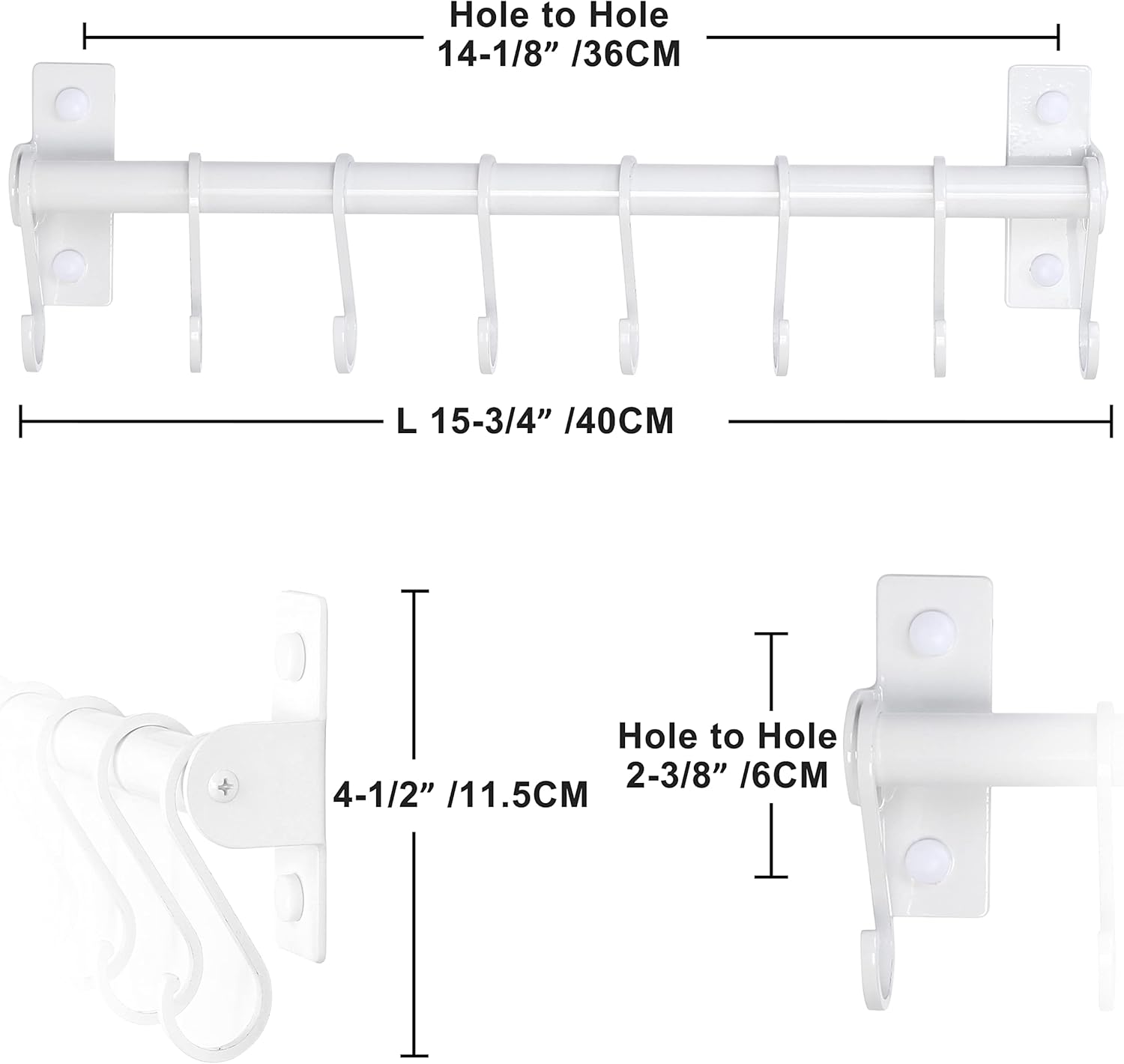 - Easy to install, sizes: 15-3/4 L x 4-1/2 H x 1-5/8 inch, including 1 x kitchen rail with 8 S hooks, mounting hardware, white color,