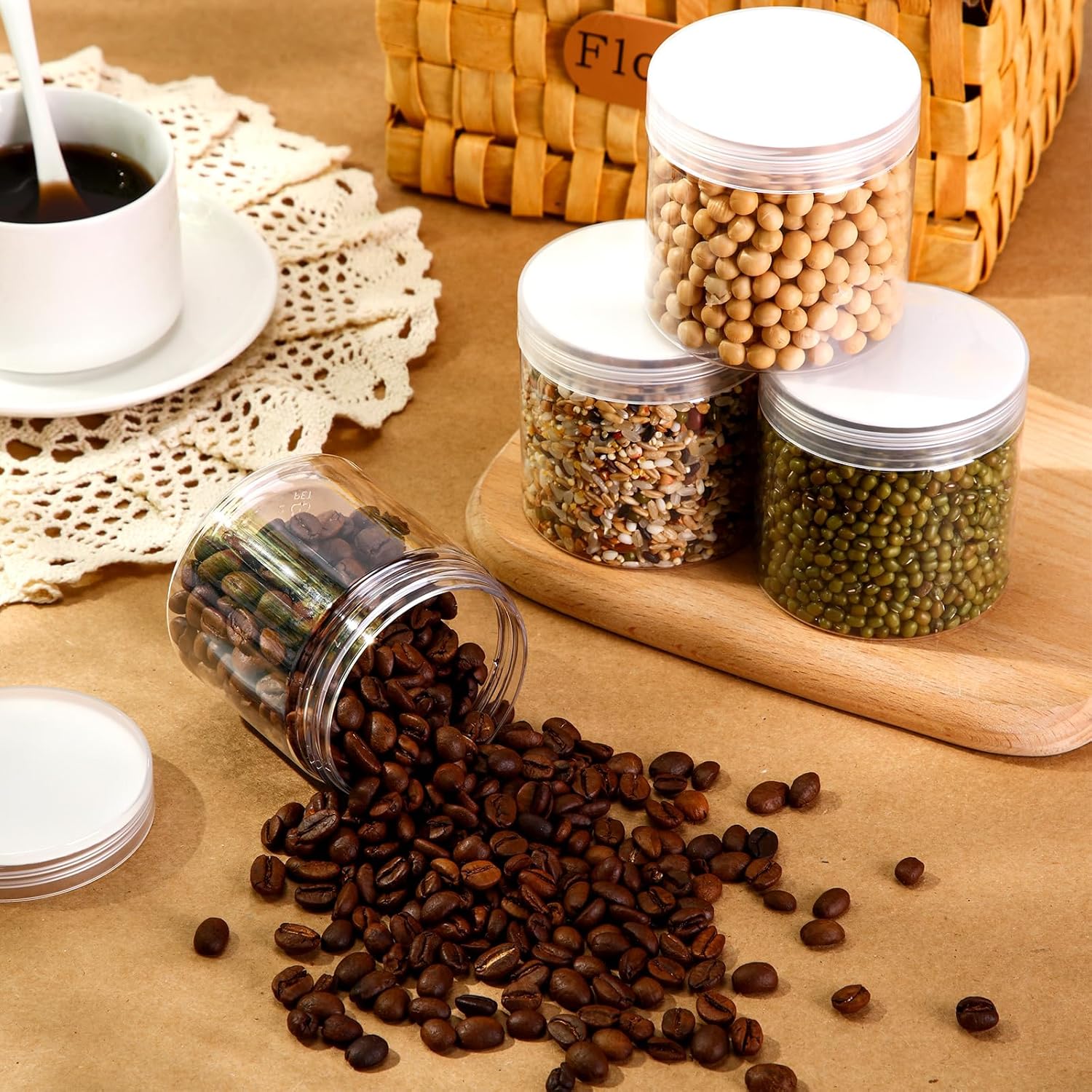 - Package includes: set of 6 pieces, durable, refillable, clear plastic container jars with screw-on lids, lovely in appearance and practical in use