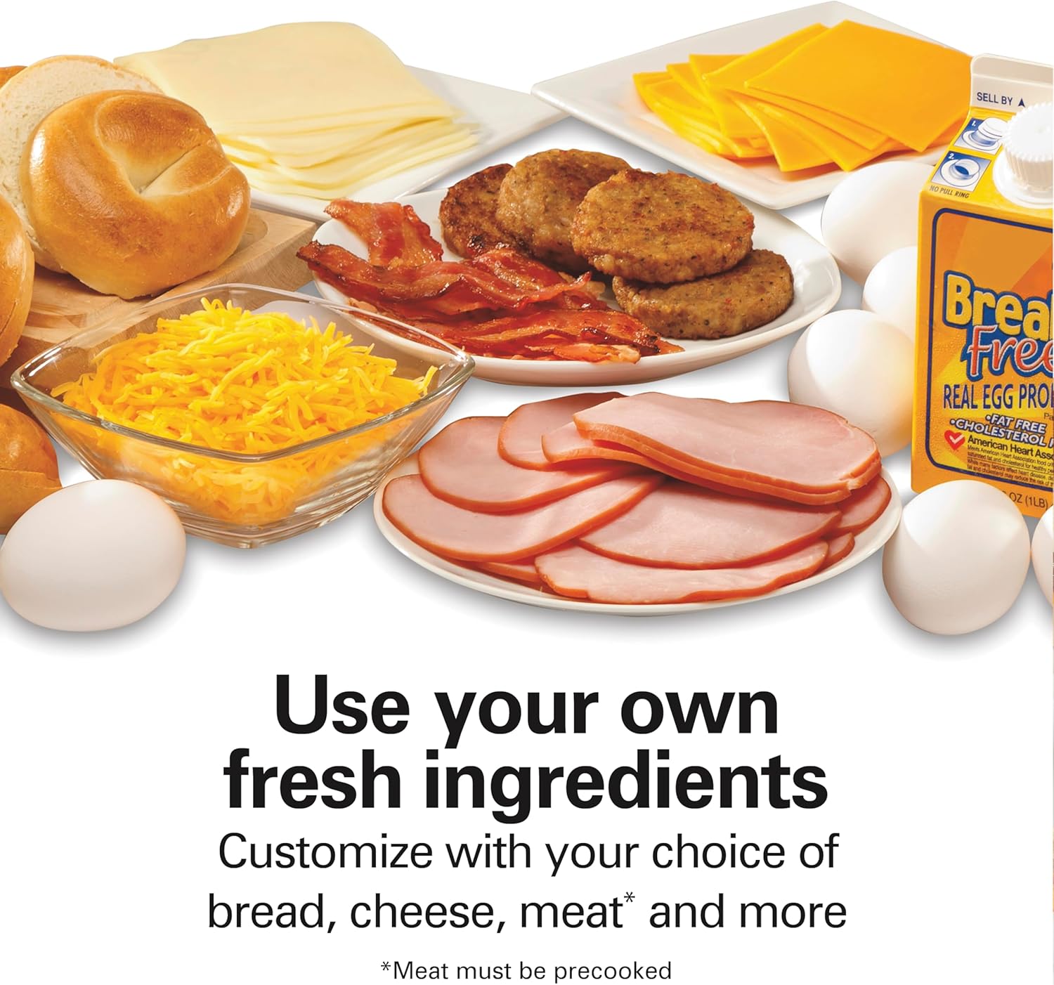 - USE YOUR OWN FRESH INGREDIENTS: Use this breakfast sandwich maker to completely customize your sandwich with your choice of bread, cheese, eggs, meats, and much more