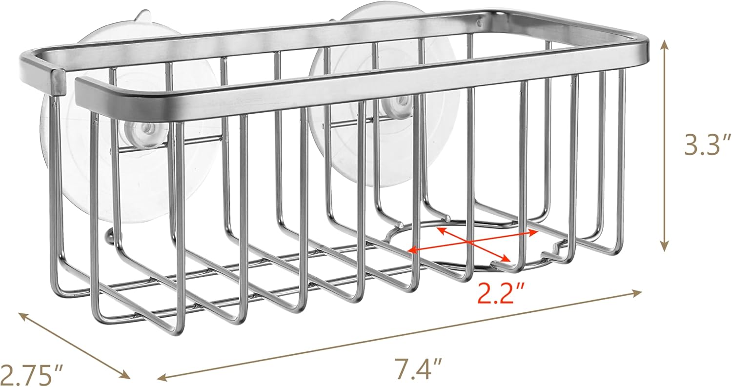 - Overall dimensions: 7.4" x 3.3" x 2.75". Important Notice: This model is larger than standard sink caddies, please use a measuring tool to confirm it fits your sink properly.