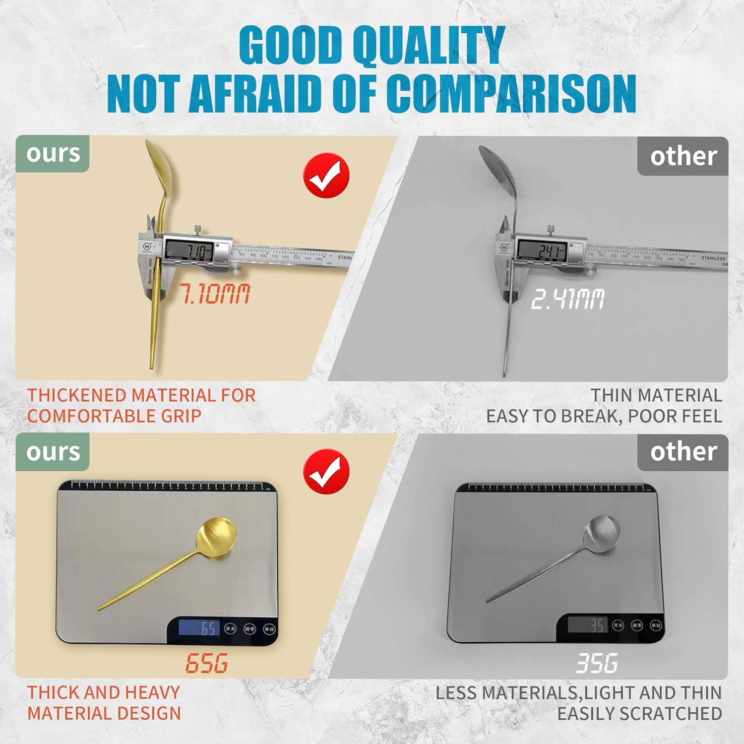 - DURABLE AND SAFE : Crafted from premium stainless steel. Durable and healthy for everyday use. The heavy-duty solid handle is not easy to deform, which is easy to compare with another cheap cutlery set
