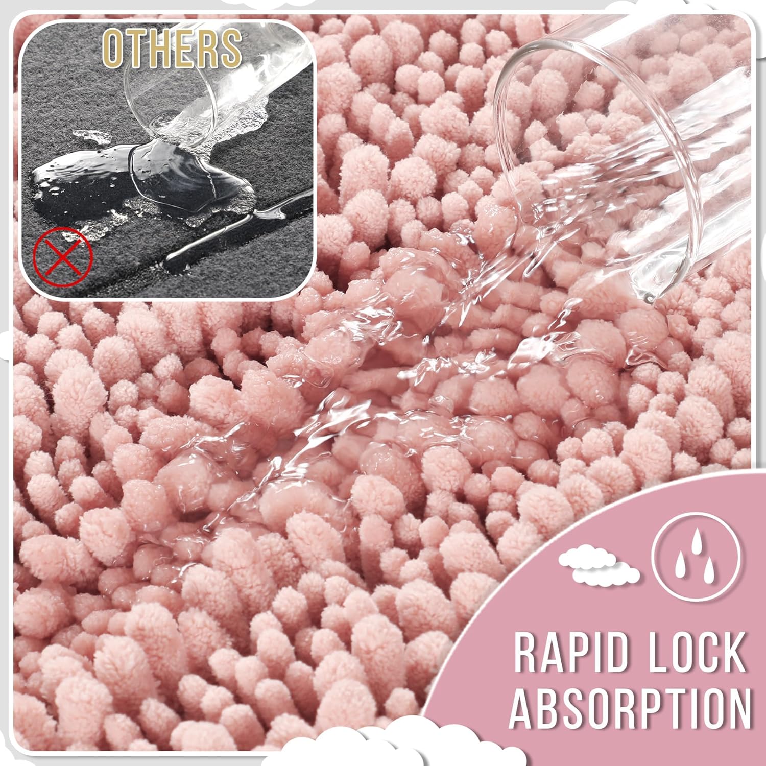 Yimobra Bathroom Rugs Non Slip Washable 24x17 Inch - Ultra Soft Absorbent Chenille Bath Mat, Quick Dry Shaggy Floor Carpet for Tub Shower, Light Pink Home Decor Accessories