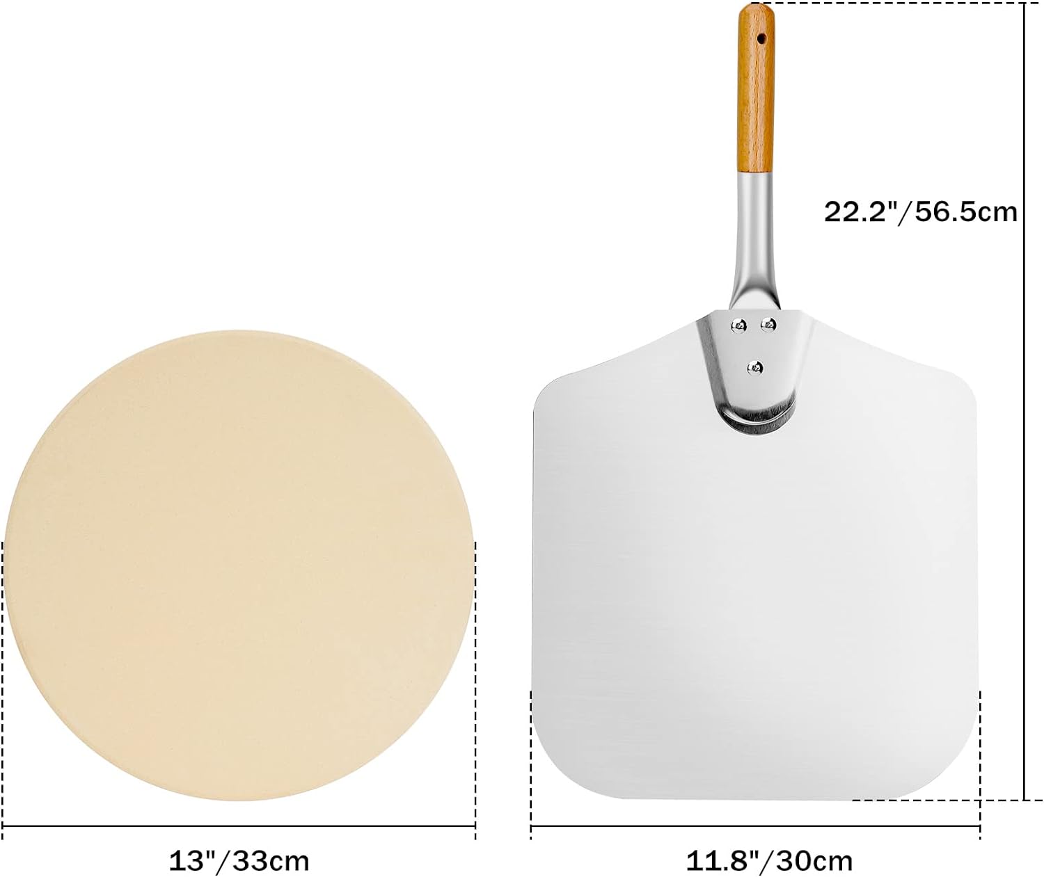 - 【Package include】Includes rotisserie ring, rotisserie kit(with 110v electric motor), 13" round cordierite stone, baking peel and 4 support chips.(Used for supporting your cooking grate)