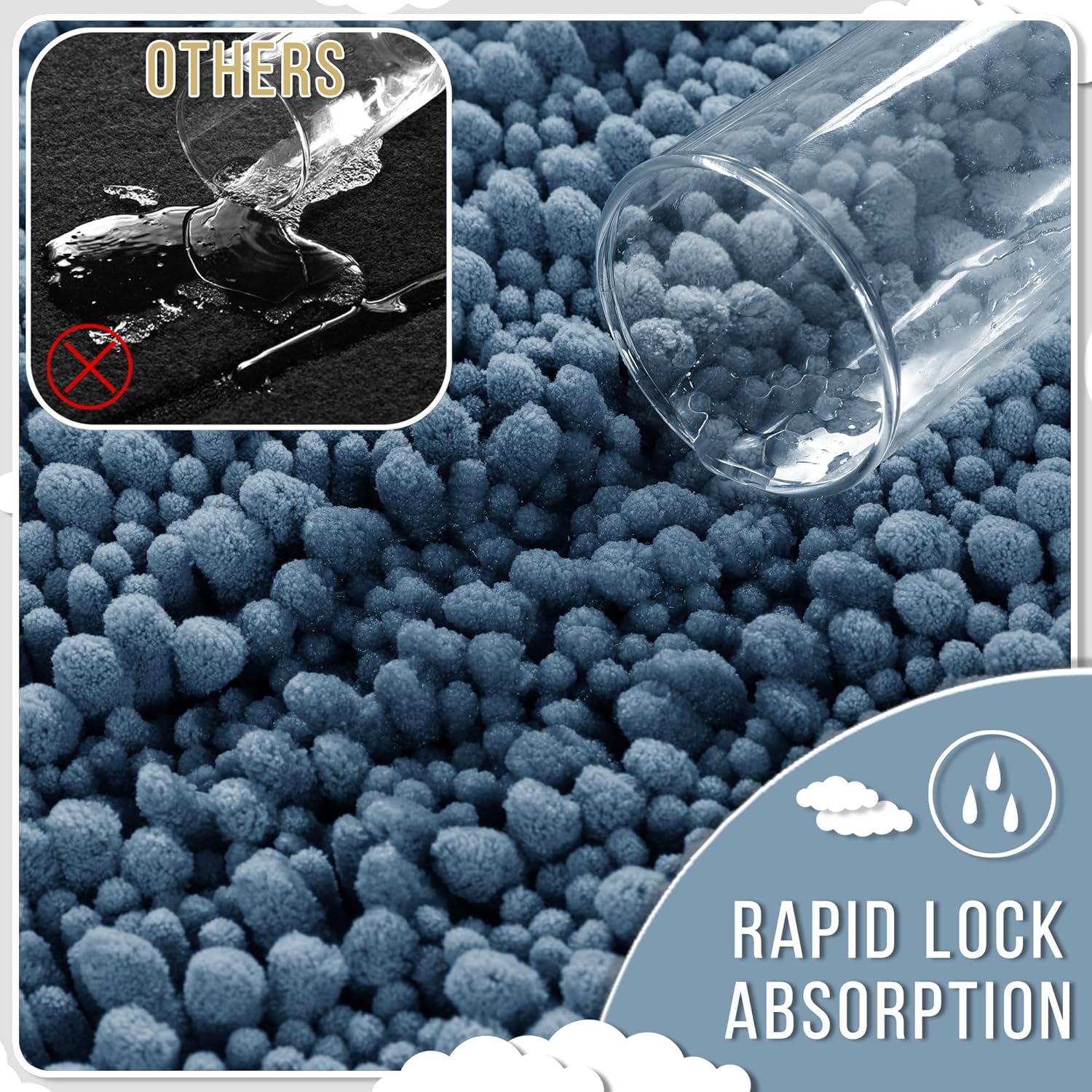 Yimobra Large Bathroom Rugs Non Slip Washable 36x24 Inch - Ultra Soft Absorbent Chenille Bath Mat, Quick Dry Shaggy Floor Carpet for Tub Shower, Denim Blue Home Decor Accessories