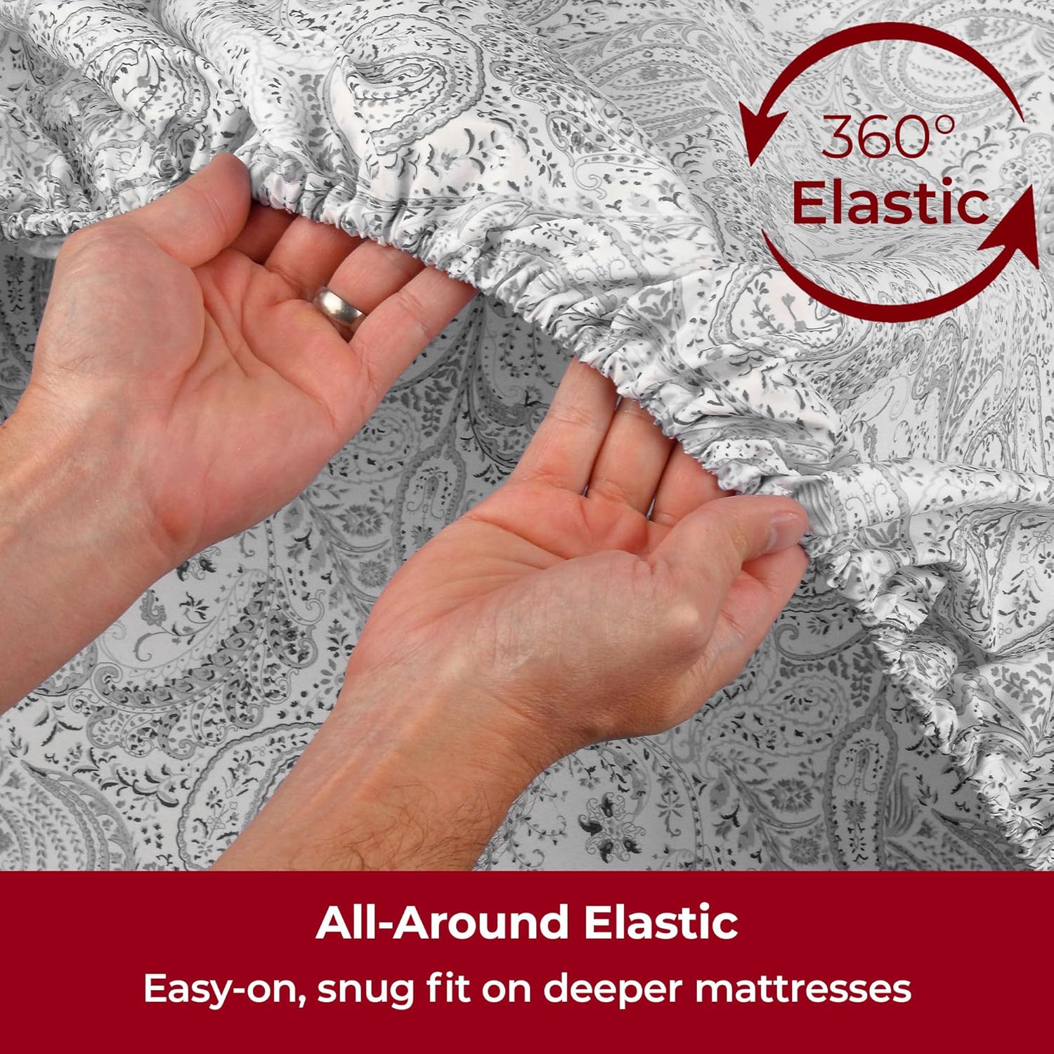 Mellanni Extra Deep Twin Sheets - 3 PC Iconic Collection Bedding - Hotel Luxury, Ultra Soft, Cooling Bed Sheets - Wrinkle, Fade, Stain Resistant (Twin, Paisley Gray)