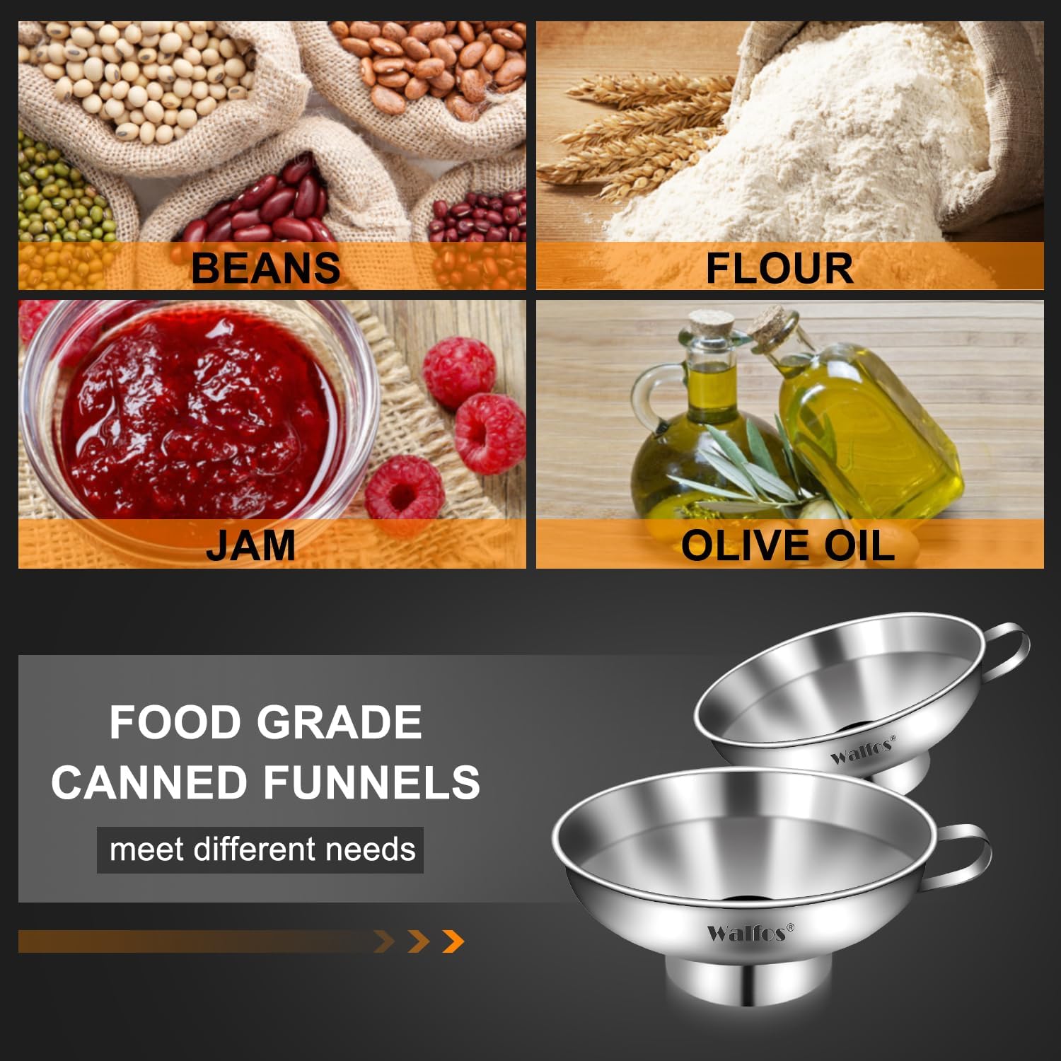- MORE FUN PROJECTS: WALFOS Stainless Steel Funnel is a perfect fit and specially designed to your mason jars, Ball jars, Kerr jars . No matter if you are funneling for canning food, pickling, spices, grains, beans, fruits and vegetables or if you are creating fun art projects with your kids, or food gifts to share with friends and family, this food grade funnel will make all your projects easy and breezy