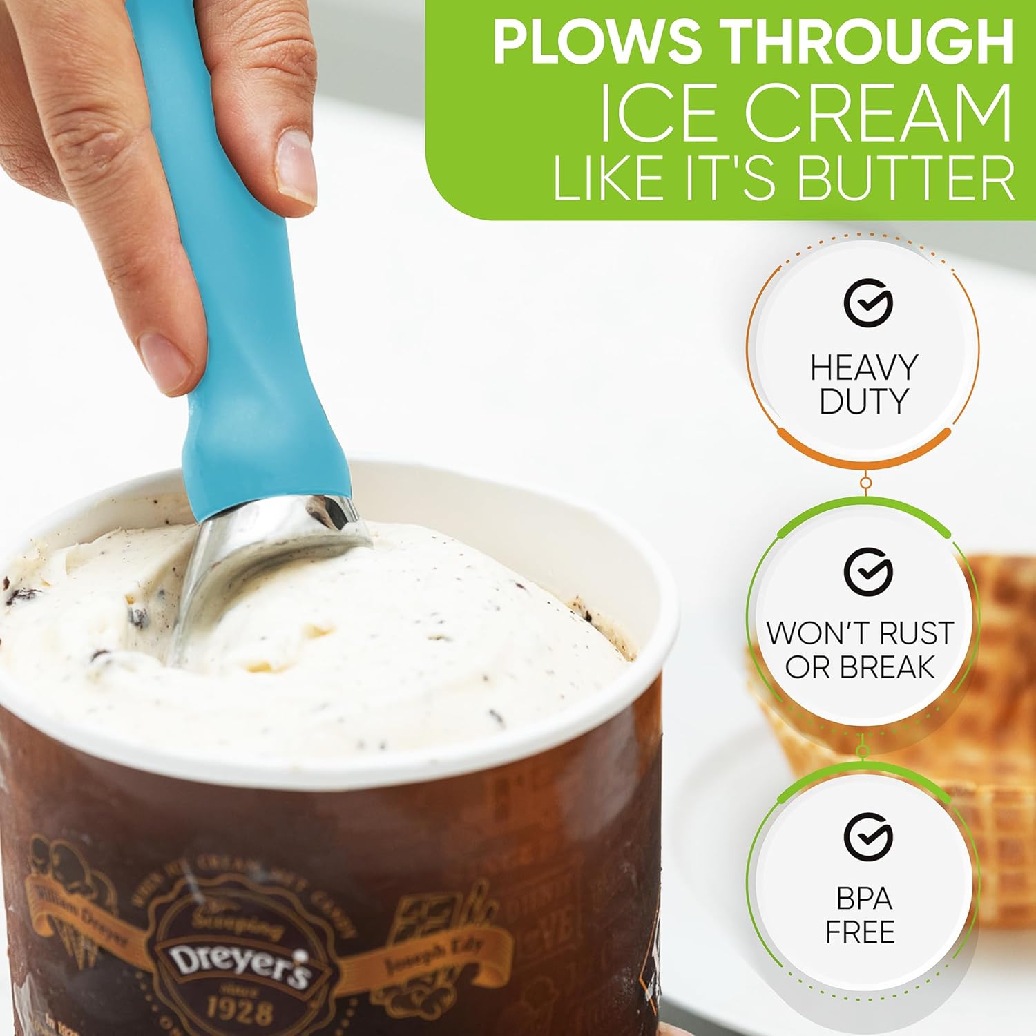 Spring Chef Ice Cream Scoop with Soft Grip Handle, Professional Heavy Duty Sturdy Scooper, Premium Kitchen Tool for Cookie Dough, Gelato, Sorbet, Aqua Sky
