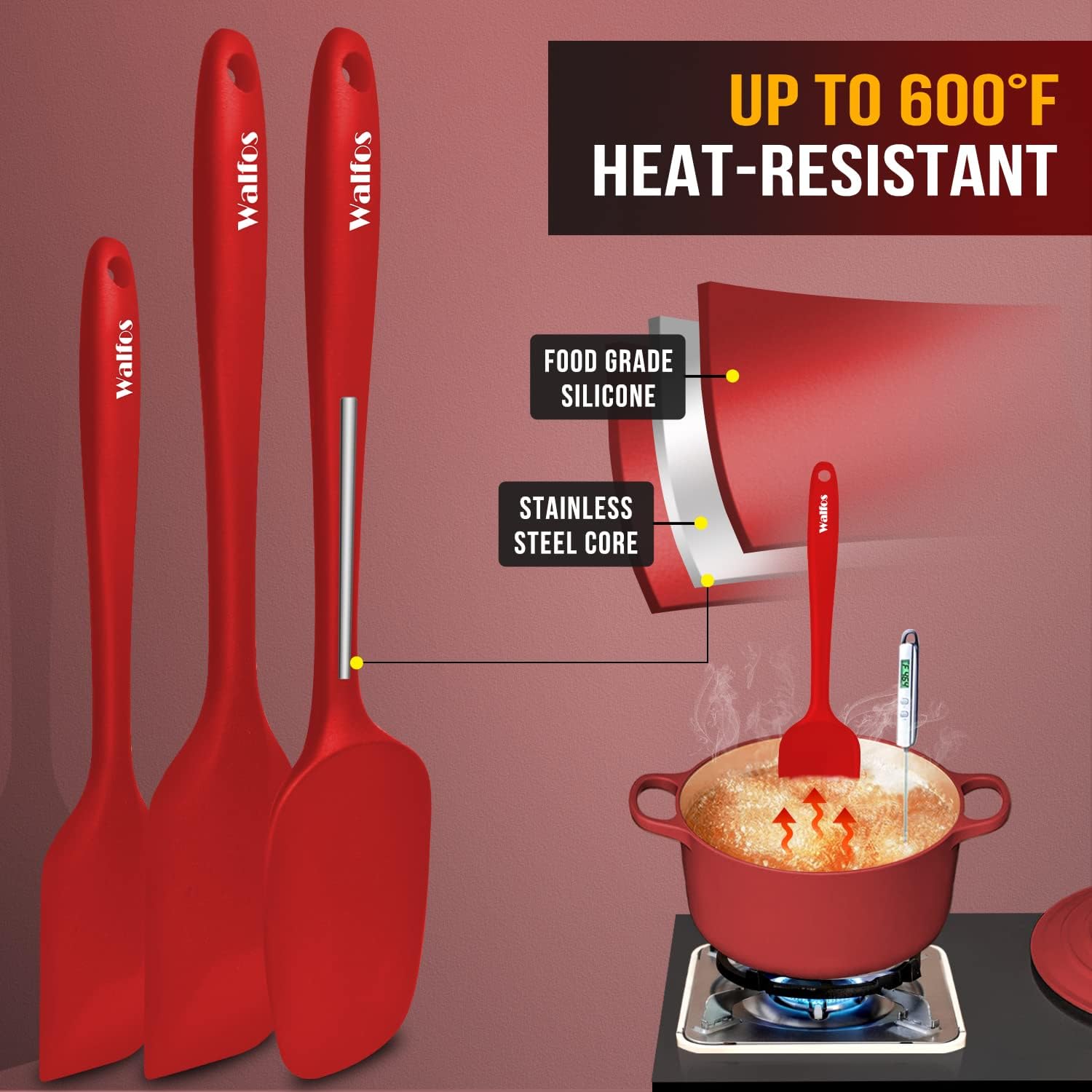 Walfos Silicone Spatula Set of 5-600°F Heat Resistant Kitchen Scraper Spatulas, Strong Steel Core and One-Pieces Seamless Design, Great for Cooking Mixing & Baking - BPA Free & Dishwasher Safe (Red)