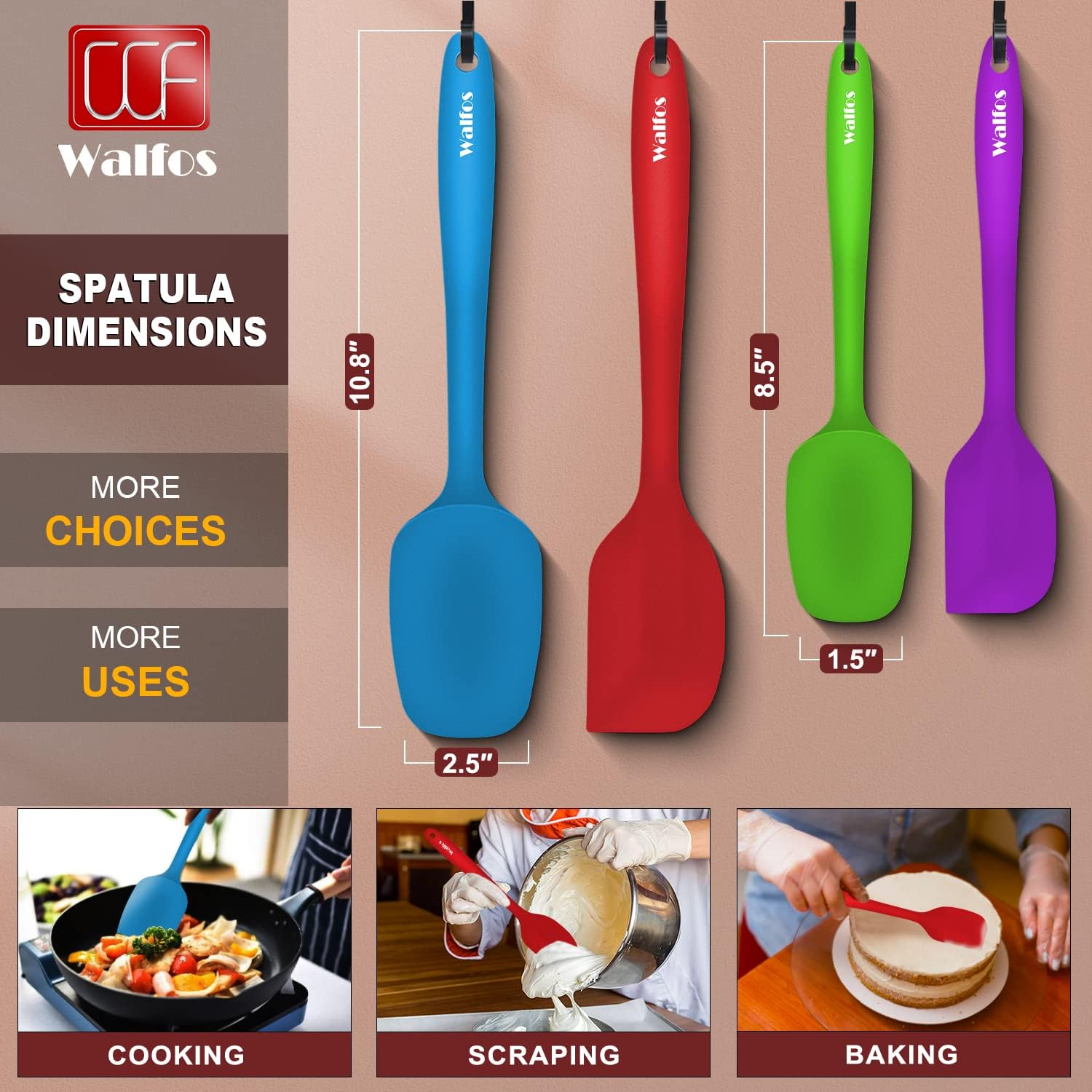 Walfos Silicone Spatula Set of 4(600°F),Heat Resistant Kitchen Silicone Scraper Spatulas, Strong Steel Core and One-Pieces Seamless Design, For Cooking Mixing & Baking,BPA Free & Dishwasher Safe