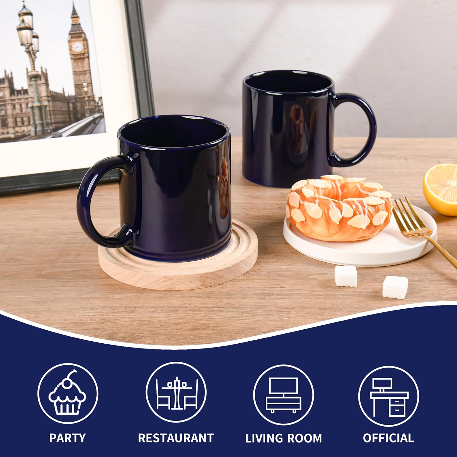 22oz Super Large Ceramic Coffee Mugs Large Handles Set of 4 (Cobalto)