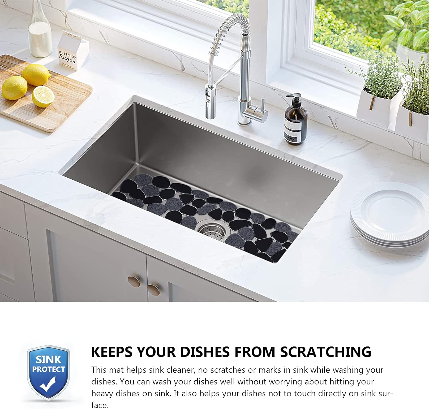 - 【Can Be Customized to Your Kitchen Sink】The size of pebble sink mat is 15.8"(L) X 12"(W), it can be cut to fit any area you need according to the place of the drain stopper.