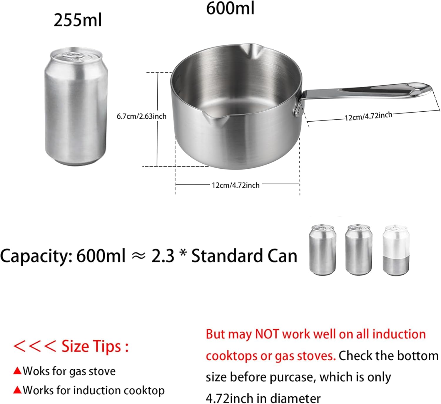 - Induction Bottom: This butter warmer saucepan is suitable for induction, gas or electric stoves. Please be noted that the inner diameter of your induction stovetop should be < 4.7inch/12cm for optimal induction performance.