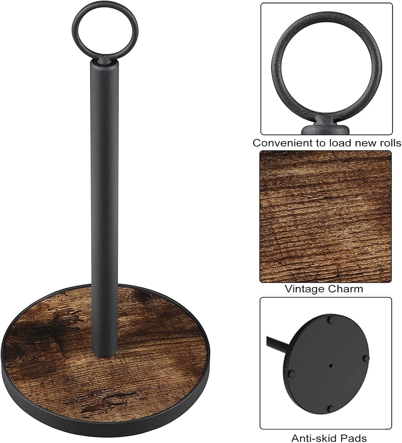 - Weighted Wooden Base - Ultra-stability of the paper towel holder stand is guaranteed thanks to its heavy-duty wood base, which prevents it from tipping over whenever tearing off a sheet of paper towel.