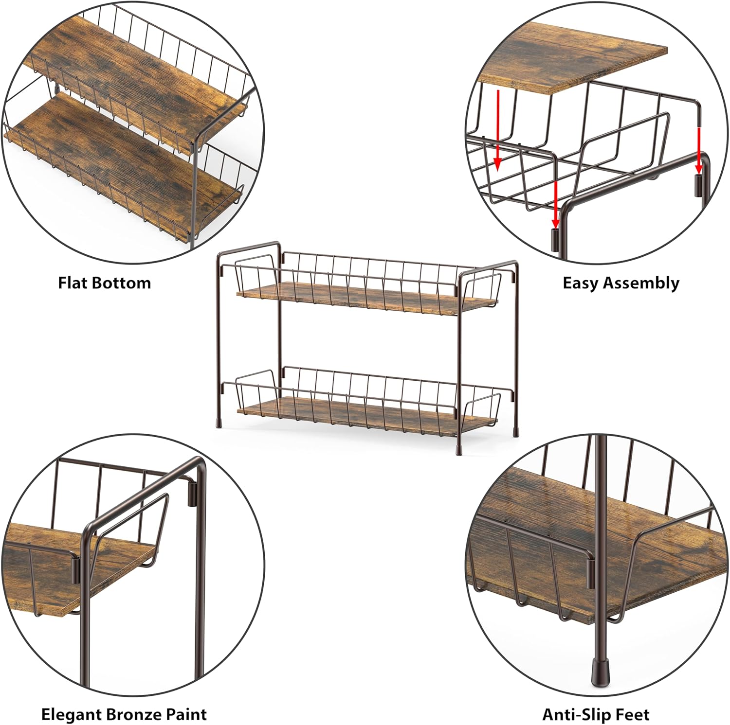 Simple Houseware Countertop Spice Rack 2-Tier Kitchen Spice Organizer Storage Shelves, Bronze