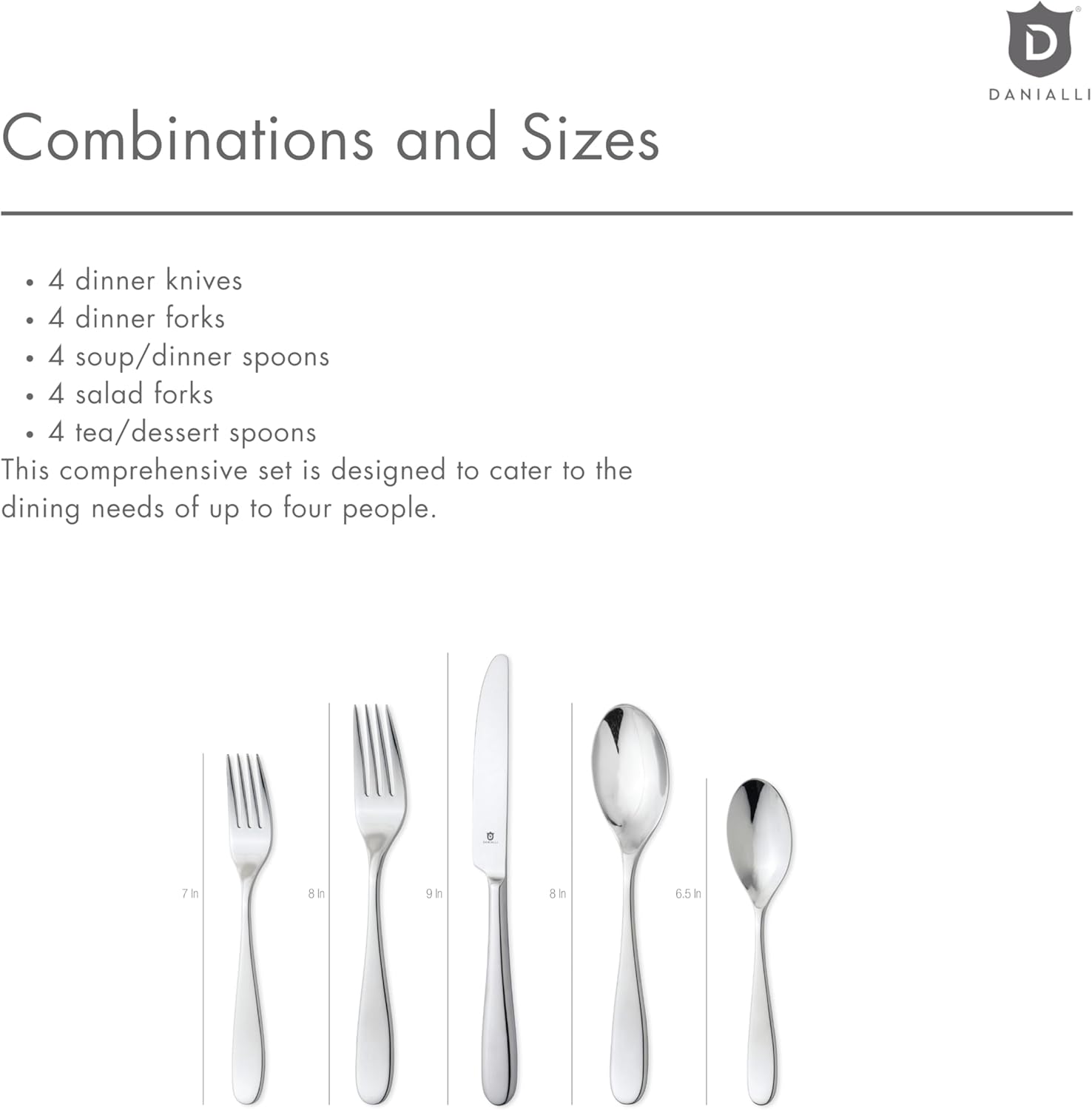 Silverware Set for 4 – 18/10 Stainless Steel Flatware, Mirror Finish, Dishwasher Safe, Heavy-Duty, Rust Resistant, Elegant Cutlery (20-Piece Set, Fidenza)