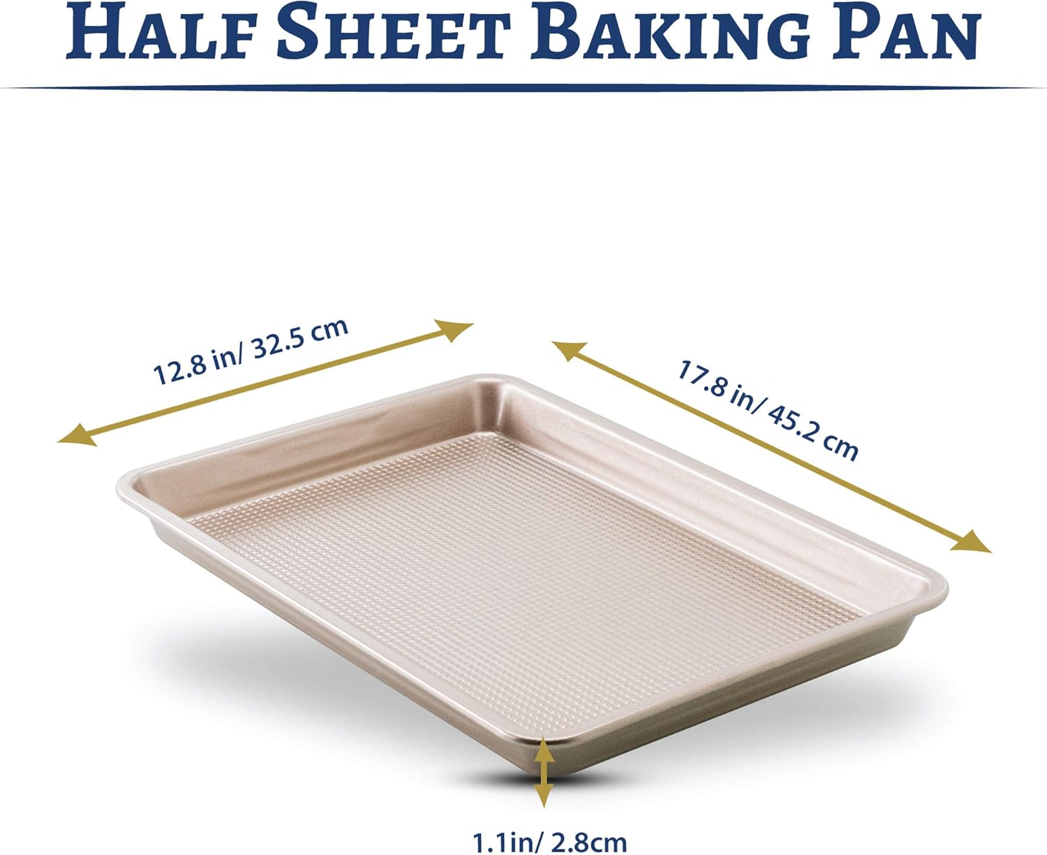 - PERFECT BAKING, EVERY TIME: Even airflow distribution from the half sheet pan’s diamond textured baking surface results in perfect, evenly-baked cookies, proteins, and more; exterior measures 17.8 x 12.8 x 1.1 inches and interior measures 17.4 x 12.4 x 0.9 inches; that means better baked goodies every time