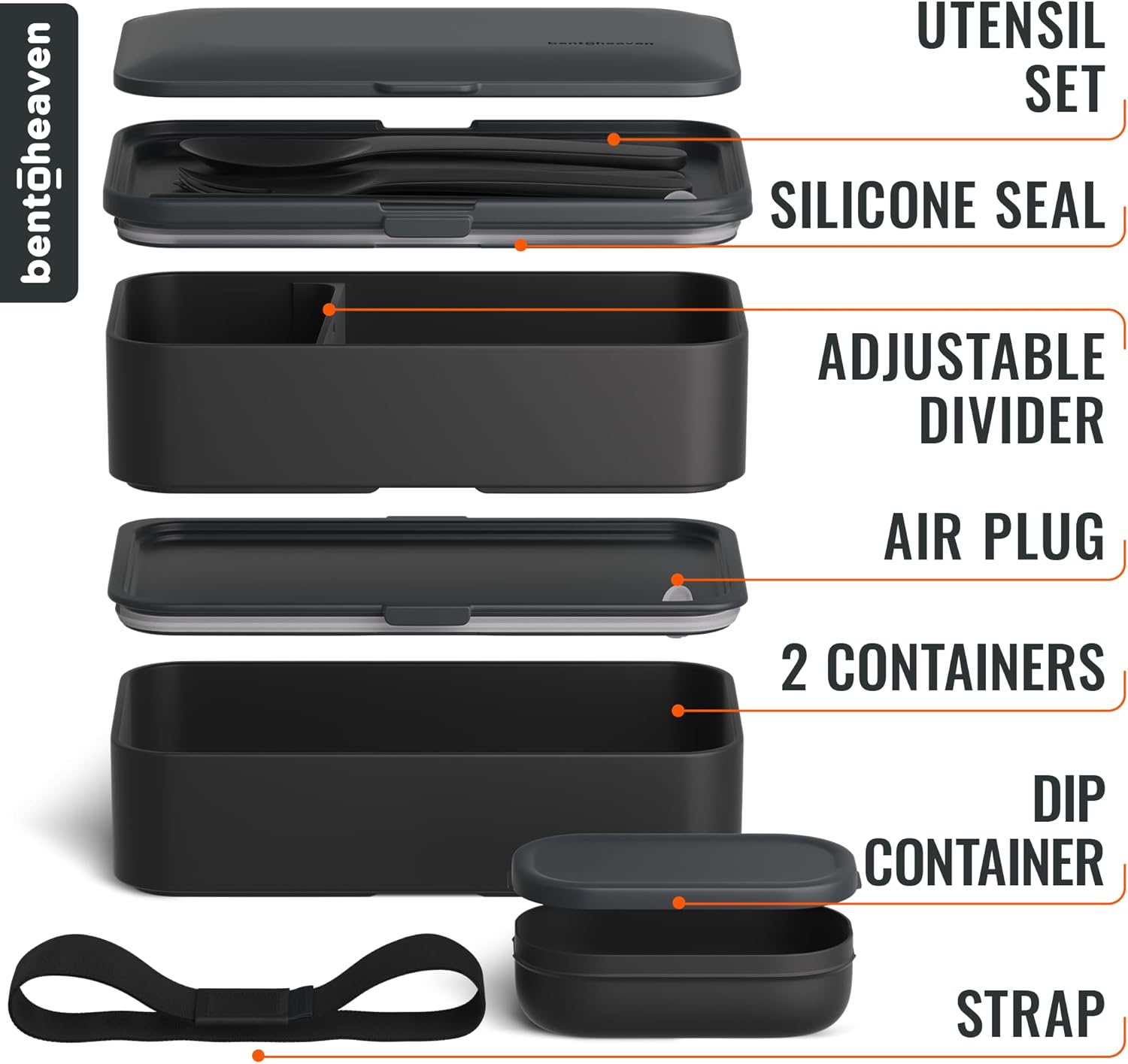 - Leakproof Bento Lunch Box! The Bentoheaven lunch box’s strong silicone makes it 100% leak-proof, while remaining super easy to open due to the built-in air vent plug.