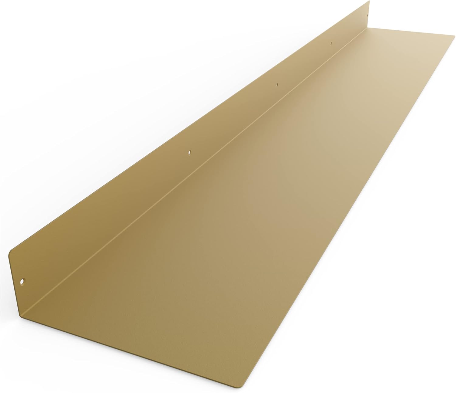 - DIMENSIONS & DETAILS: Measuring 48-inches long x 8-inches in depth, our steel floating shelf is made from 14 gauge raw steel and professionally powder coated gold. The weight of the shelf is 10.25 LBS. It's perfect for displaying books, plants, bottles, picture ledges, and retail displays