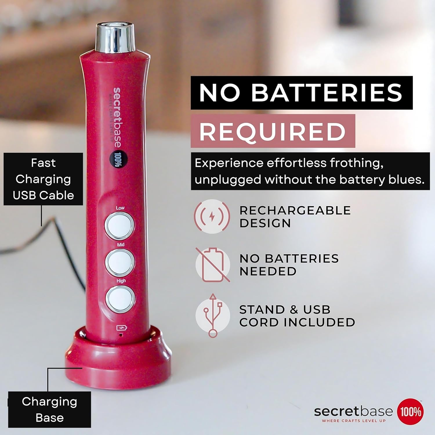 Secretbase Rechargeable Milk Frother Mixer, Pitcher and Charging Base - 3 Speed Handheld Foam Maker for Barista Style Coffee, Bulletproof Coffee, Keto Coffee and Matcha Latte