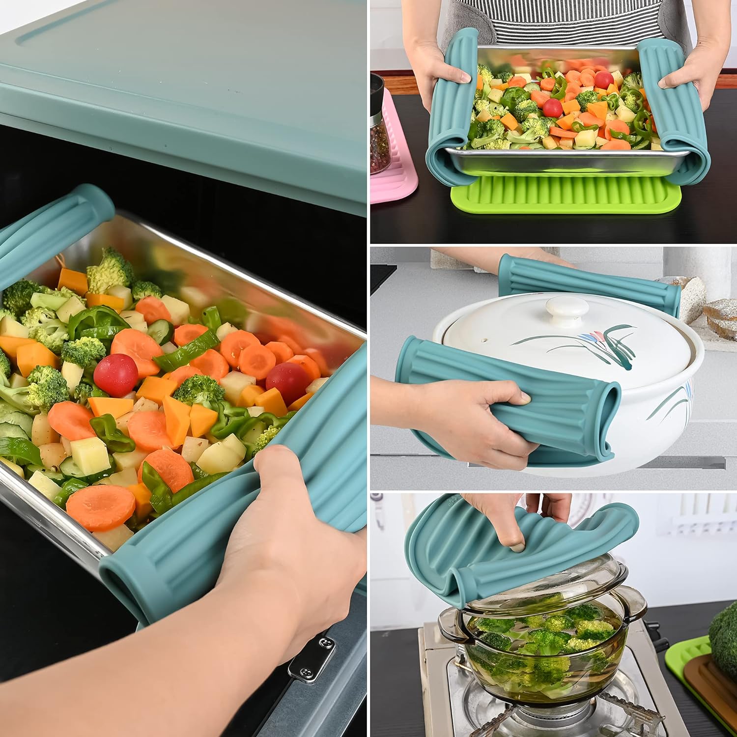 - FOOD-GRADE SILICONE&PERFECT SIZE - Made from 100% BPA free <br>food grade silicone, non-slip,flexible <br>enough to comfortably grab a hot dish or pan,<br> size 9x12 Inch,Weight:340g per set(thicker and weighter than others).