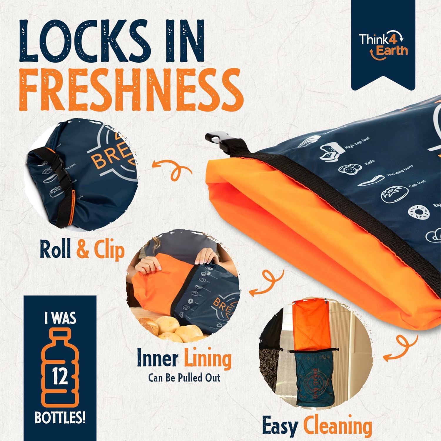 - ECO-FRIENDLY & REUSABLE BREAD BAGS: Opt for our reusable bread bags made from recycled plastic bottles as a planet-conscious alternative to disposable plastics. Contribute to a greener future while keeping your homemade or professional bakery products fresh with Think4Earth's sustainable food storage solutions. Crafted from 12 BPA-free, food-safe recycled plastic bottles, these vegan-friendly, 100% recyclable bags make a positive impact.