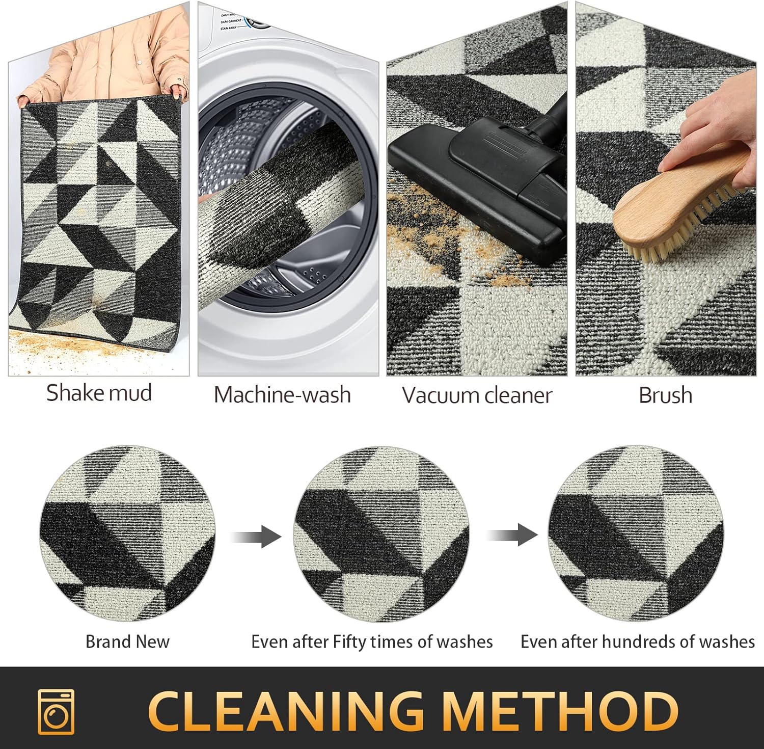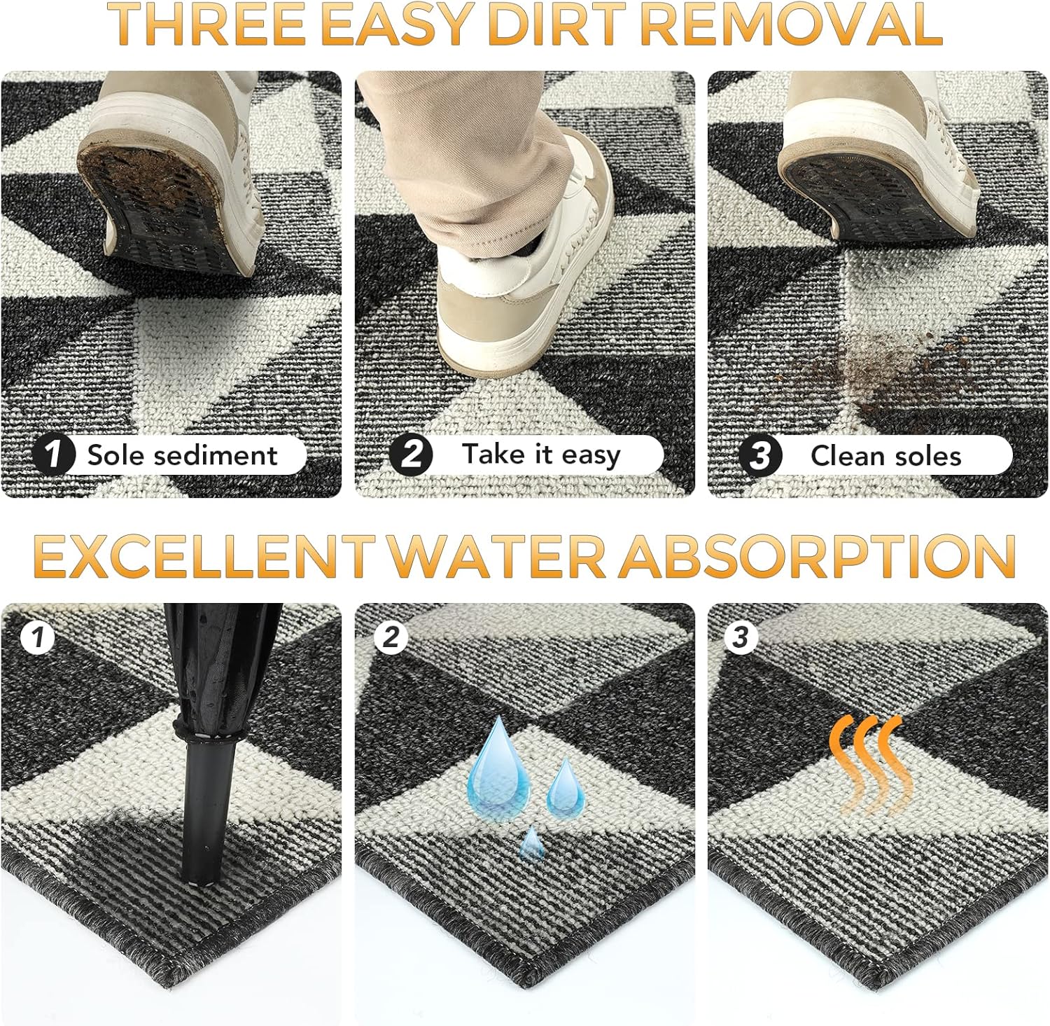 - EASY TO CLEAN: The unique rib fabric design removes dirt or sand easily. When your kitchen mats get dirty, first shake it off outdoors or over your garbage bins, then sweep with a broom or vacuum regularly or use a garden hose to rinse the mat outdoors. For deeper clean: machine washable, use water under 86 (℉) / 30 (℃). Do not iron. Do not bleach. Do not expose it to the sun for a long time.
