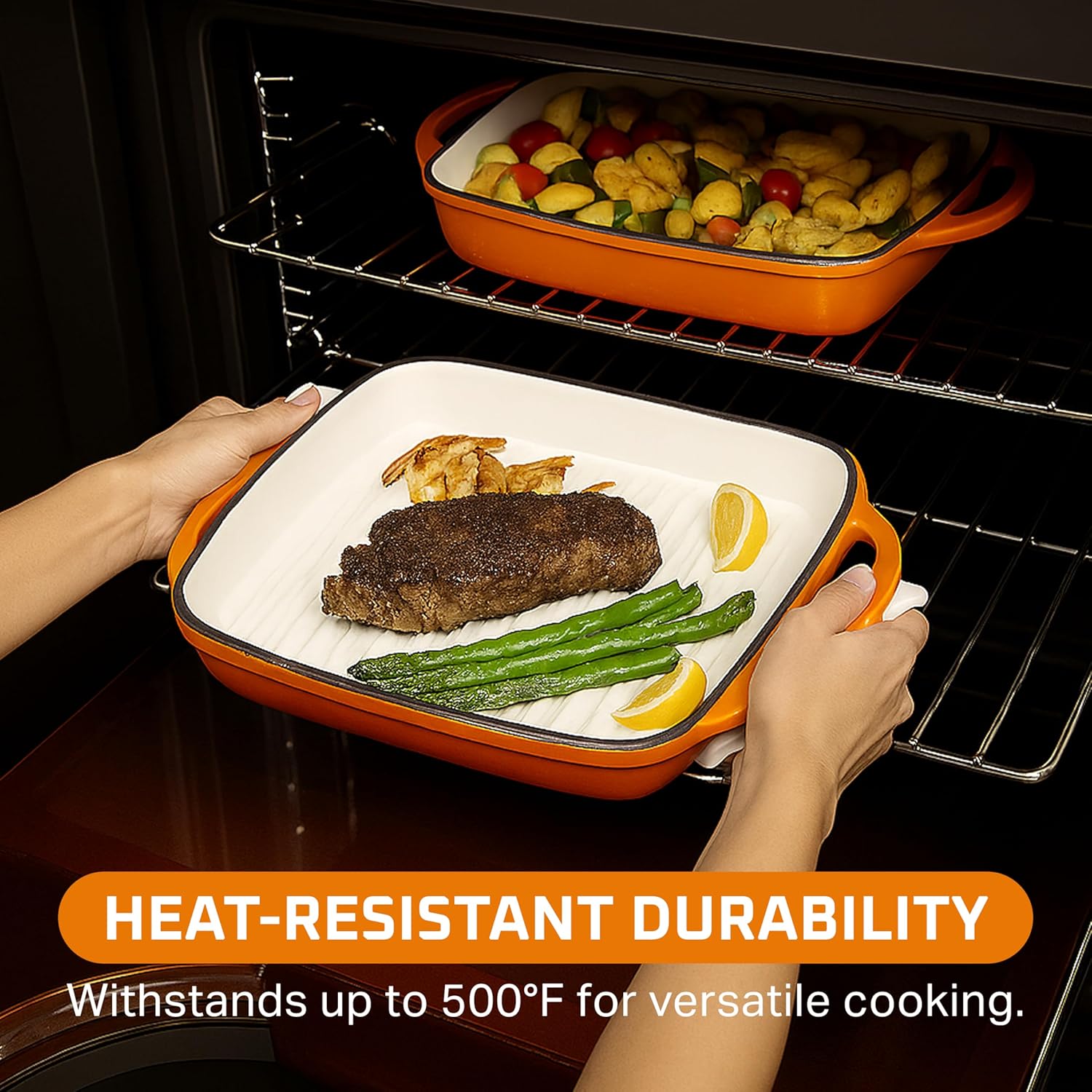 Bruntmor 2-in-1 Square Pumpkin Spice Cast Iron Dutch Oven With Handles, Enamel All-in-One Cookware Set, Braising Pan For Casserole Dish, Crock Pot Covered Cast Iron Skillet