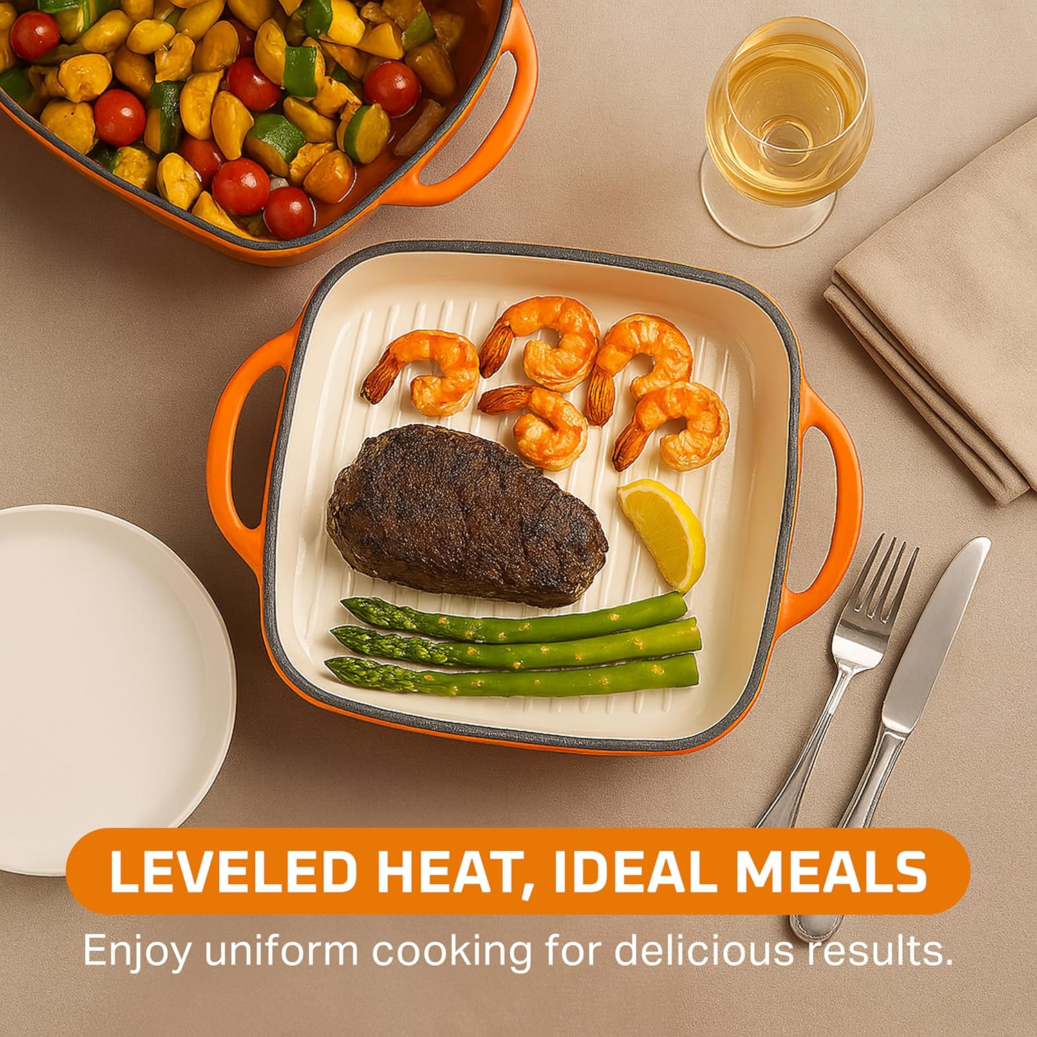 - Even Heat Distribution: This nonstick cast iron braiser pan with a lid ensures uniform heat distribution, keeping your dishes warm for hours and preventing food from sticking.