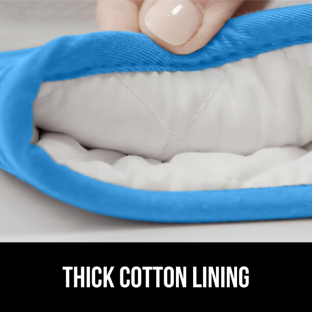 GORILLA GRIP BPA-Free Soft Silicone Oven Mitts, Heat Resistant and Waterproof Cooking Gloves, Thick Cotton Lining, Flexible Gripping for Baking Grilling, Kitchen Potholders Set of 2, 12.5x8.3, Aqua