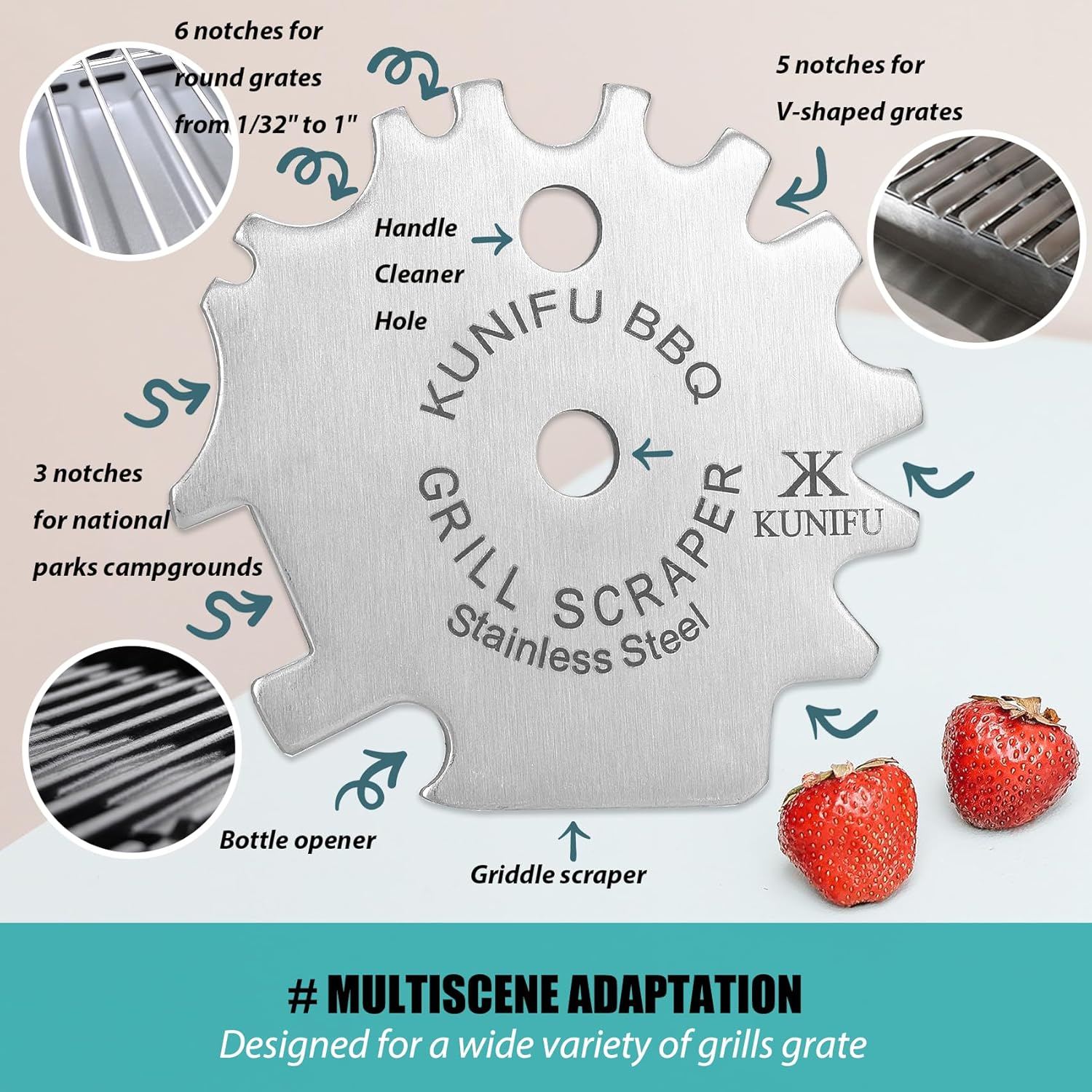 KUNIFU BBQ Grill Scraper, Stocking Stuffers, Bristle-Free for Griddle, Kitchen Gadgets Cleaner, Camping Accessories, Ideal Gifts for Christmas, for Men, Dad, Husband, Boyfriend, Fathers Day