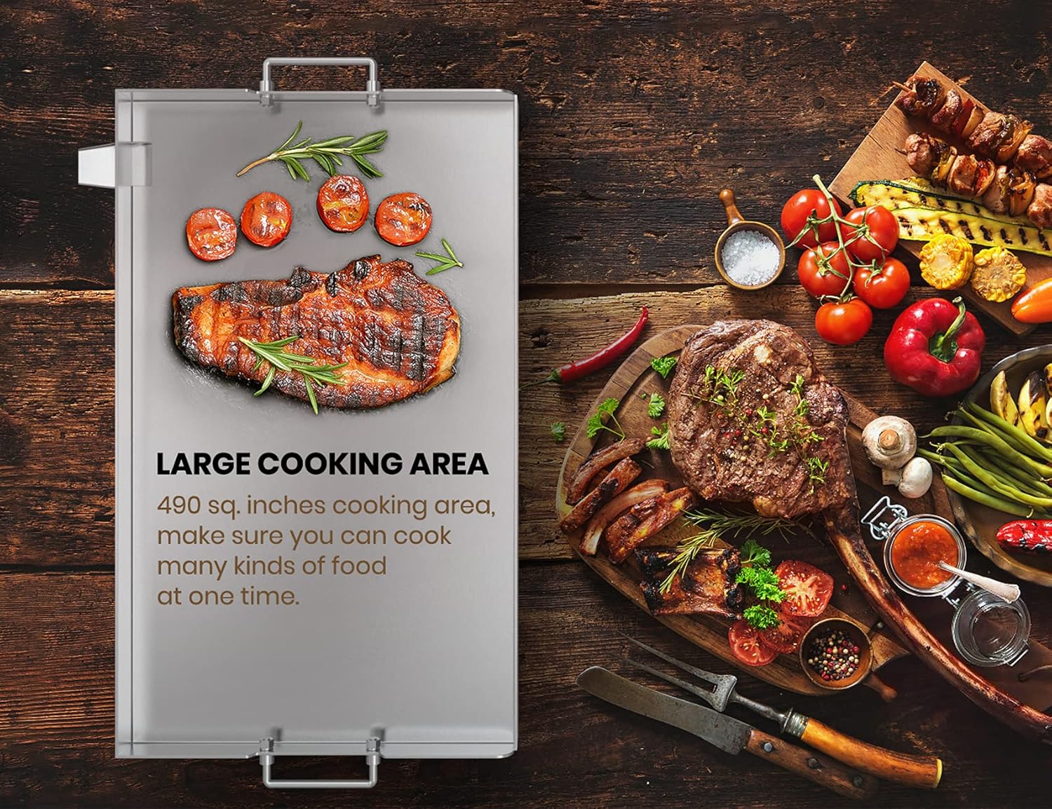 - Large Cooking Area: With 29” x 17.4” (504 sq. Inches) large surface, the grill accommodates enough grilled food for a large backyard or park barbecue party.