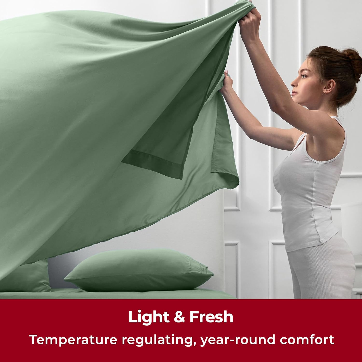 Mellanni Twin Sheets Set - 3 PC Iconic Collection Bedding - Hotel Luxury, Extra Soft, Cooling Bed Sheets - Wrinkle, Fade, Stain Resistant (Twin, Sage)