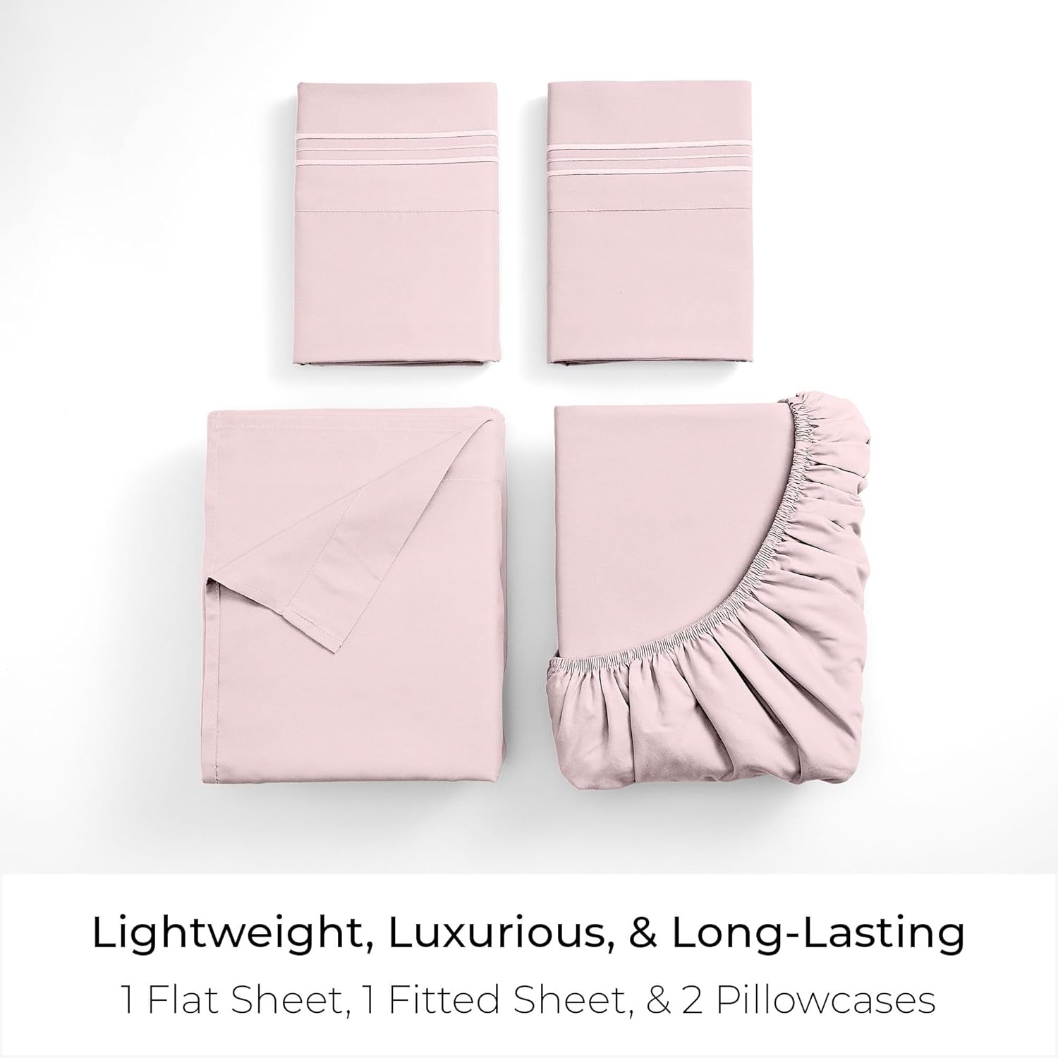 Mellanni Full Sheets Set - 4 PC Iconic Collection Bedding - Hotel Luxury, Extra Soft, Cooling Bed Sheets - Wrinkle, Fade, Stain Resistant (Full, Blush Pink)