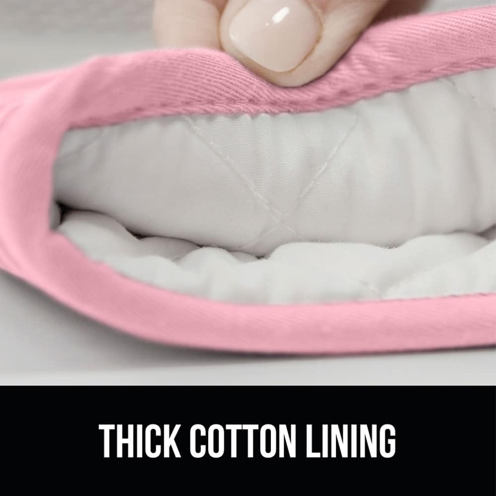 GORILLA GRIP BPA-Free Soft Silicone Oven Mitts and Pot Holders Sets of 4, Heat Resistant Waterproof Cooking Gloves, Thick Cotton Lining, Flexible Gripping for Baking Grilling, Kitchen Trivets, Pink