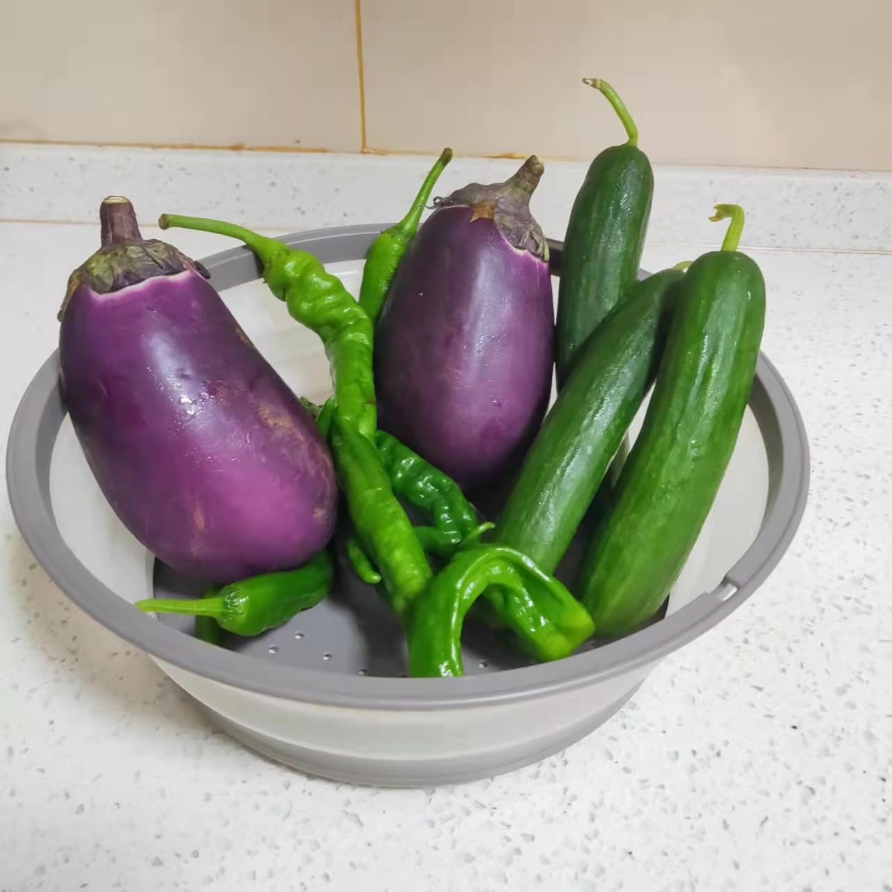 - Nice Vent Holes on the top:The vents allow moisture to exit during heating,so one can avoid food explosions and messy cleanups,They trap quite a lot of steam,which allows us to use it as a cooking lid on our dishes,of course it is also a multifunctional fruit and vegetable drain basket