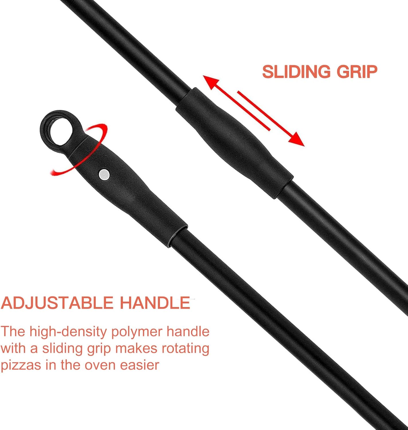 - 【Long Handle】The 47-inch (120 cm) aluminum turning pizza spatula allows you to easily rotate your pizzas, breads, or pies in hot ovens. The 37-inch long handle and sliding grip design solve the problems of unsafe use, looseness and easy slipping during baking
