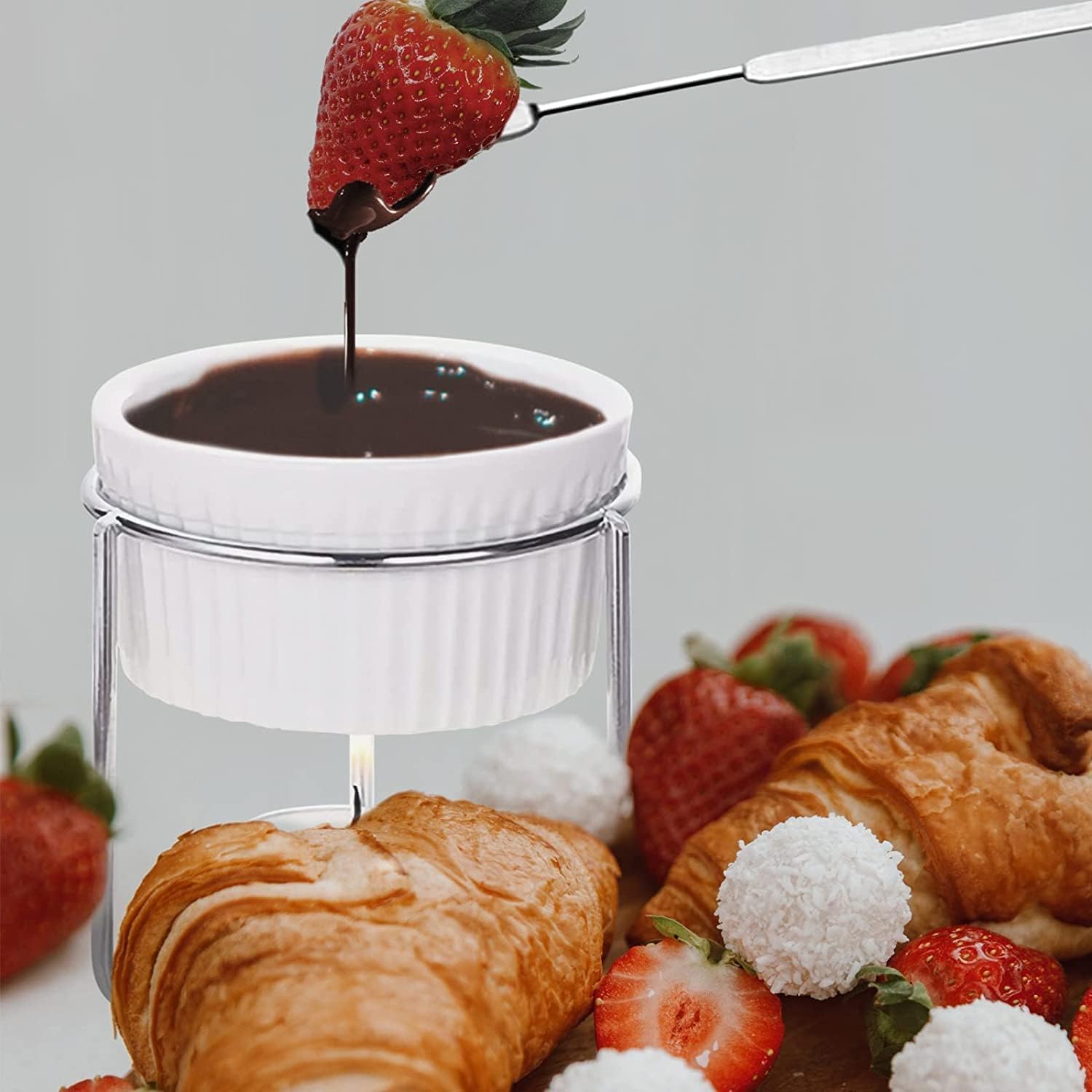 - Multi-purpose: professional seafood butter warmer 4-piece set, you can put butter,margarine, chocolate and other dips into ramekins to melt them, ramekins can keep the contents warm without burning. It is also ideal for dips, hot sauces, seasonings, appetizers and side dishes. The ramekins can also be used to make desserts, cakes, etc.