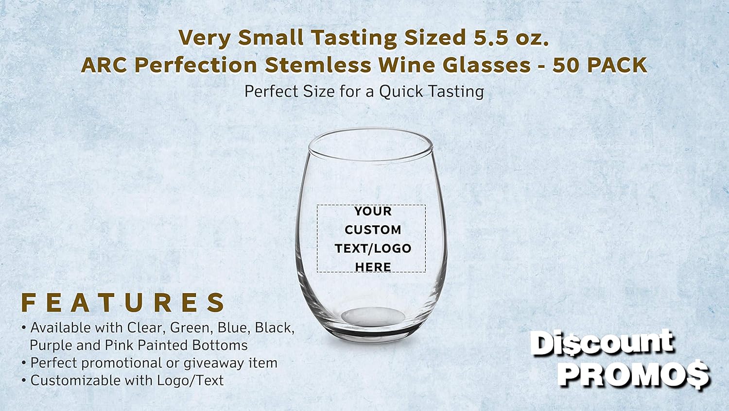 Custom Stemless Wine Glasses by ARC 5.5 oz. Set of 50, Personalized Bulk Pack - Perfect for Hotel, Bar, Restaurant or Lounge - Black