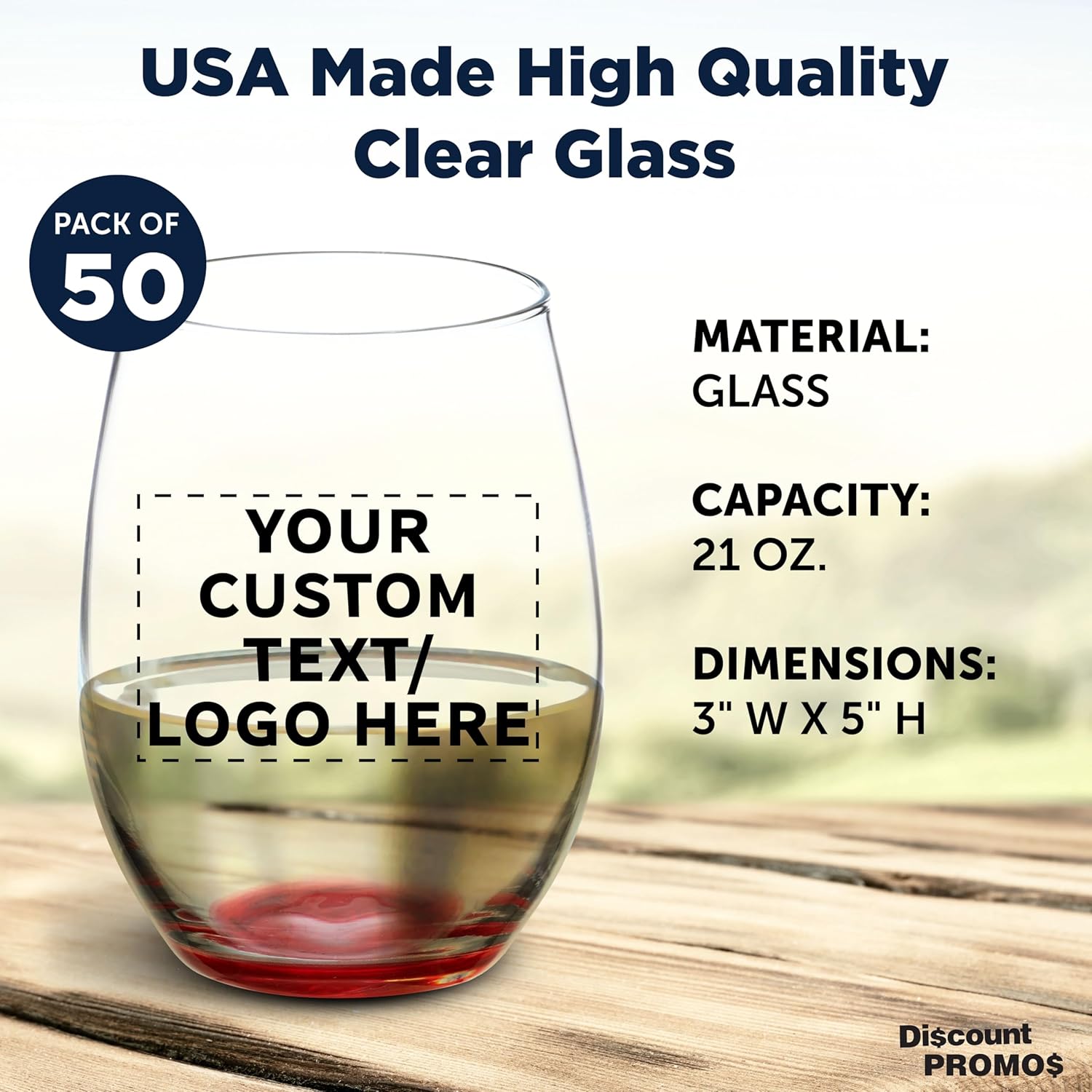 DISCOUNT PROMOS 50 ARC Stemless Wine Glasses Set, 21 oz. - Customizable Text, Logo - Chardonnay, Cabernet, Merlot, Sauvignon - Red