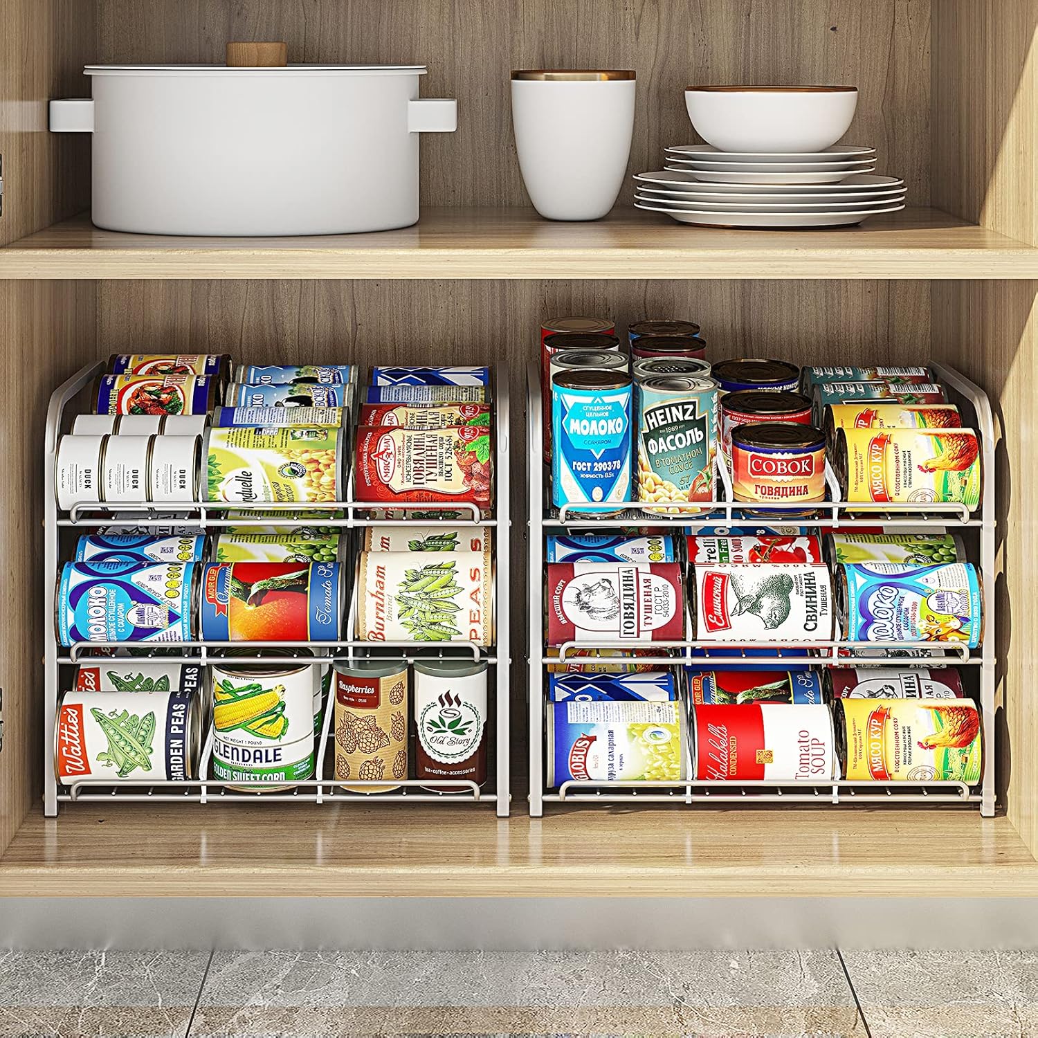 AIYAKA Can Rack Organizer, 3 Tier Stackable Can Storage Dispenser, for Food Storage, Kitchen Cabinets or Pantry, Storage for 36 Cans, Silver