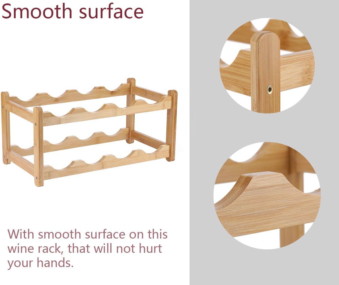 Wine Rack 8 Bottle 2-Tier Eco-Friendly Bamboo Wine Storage Easy-Assembly Space-Saving for Wine Lovers,Kitchen Wine Organizer for Countertop,Pantry, Home,Room Decor,Bar