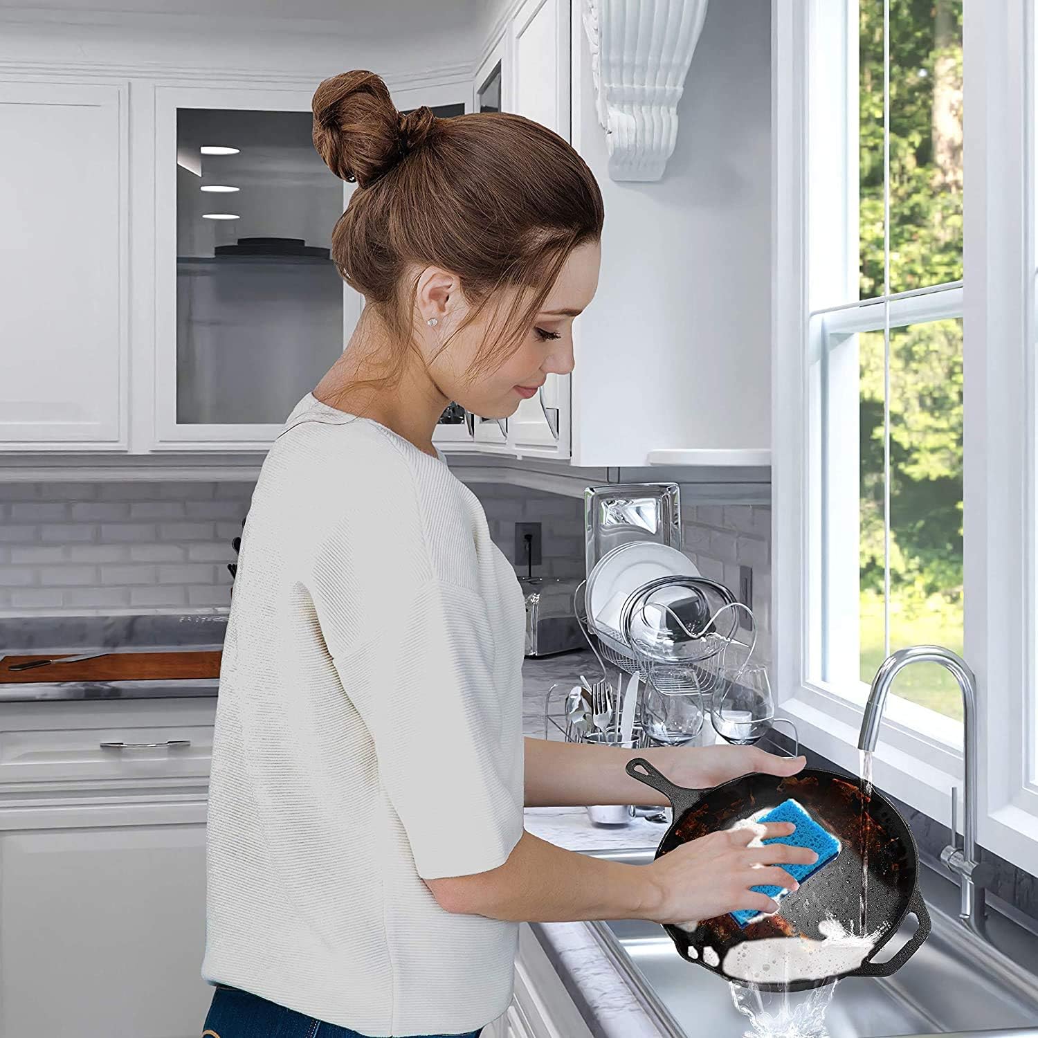 - Incredible Scrubbing Power: Each Dish sponge has two sides: a soft, absorbent sponge and a hard, tough scouring pad. That means you’ll take less time dishwashing, scrubbing pots, and cleaning walls, floors and work surfaces.