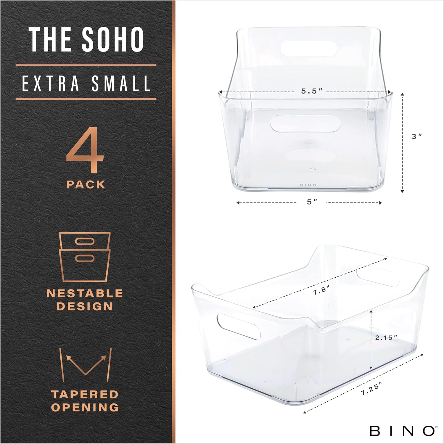 BINO | Plastic Organizer Bins, X-Small - 4 Pack | THE SOHO COLLECTION | Multi-Use Organizer Bins | Pantry & Freezer Bin | Plastic Storage Containers | Bin for Home & Kitchen Org