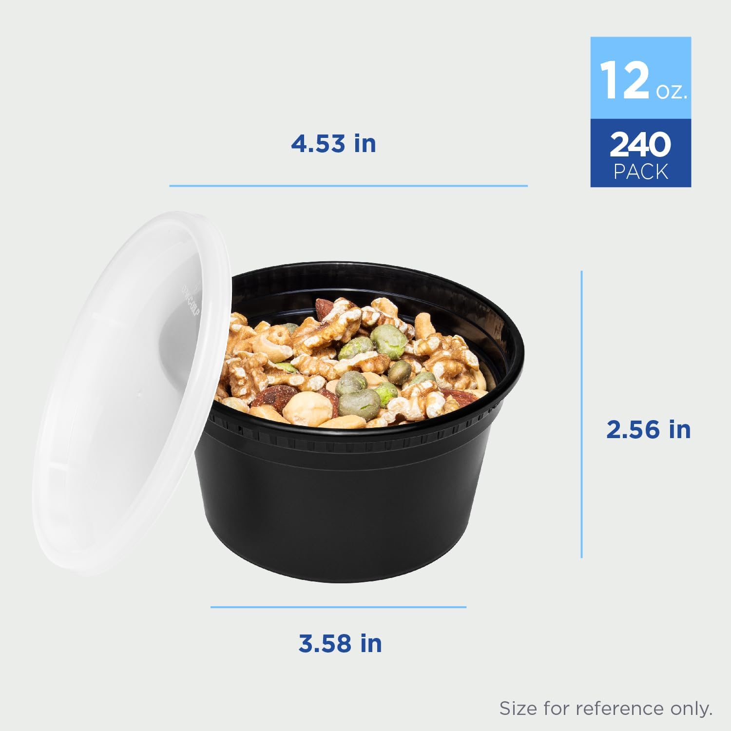 Karat [12oz - 240 ct Black PP Injection Molded Round Deli Containers with Lids (FP-IMDC12-PPB)