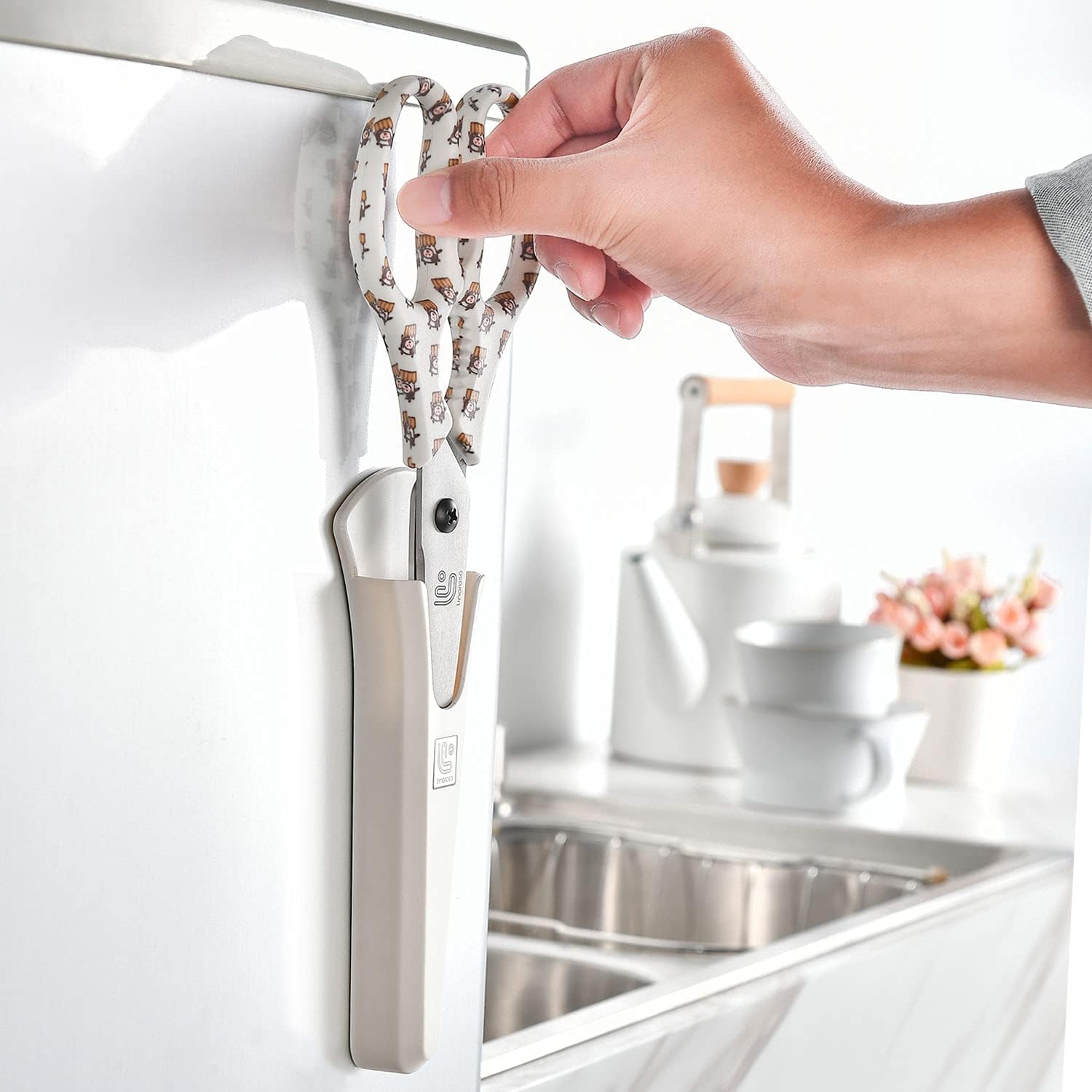 Linoroso Kitchen Scissors Heavy Duty Kitchen Shears with Magnetic Holder Made with Japanese Steel 4034, Multipurpose Ultra Sharp Cooking Scissors for Meat/Vegetables/BBQ/Herbs/Pizza (Graphic,Cow)